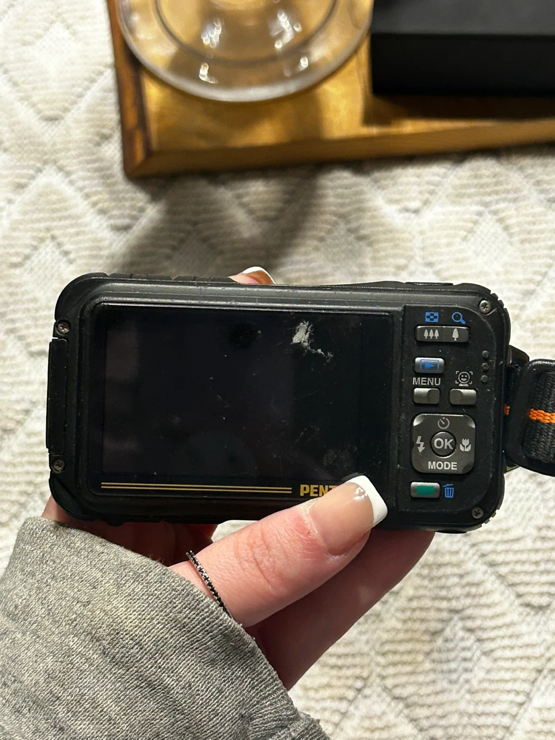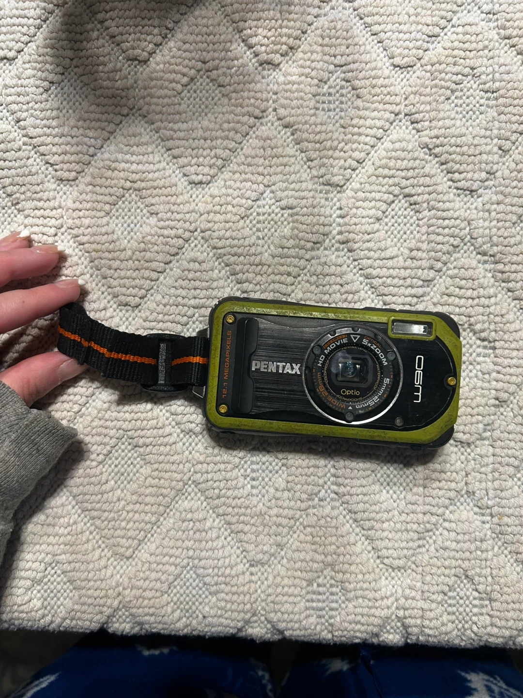 Selling a used Pentax Optio W90 digital camera. It's waterproof and ready for adventure! Features include HD movie recording and a 5x zoom. Perfect for capturing memories on the go
