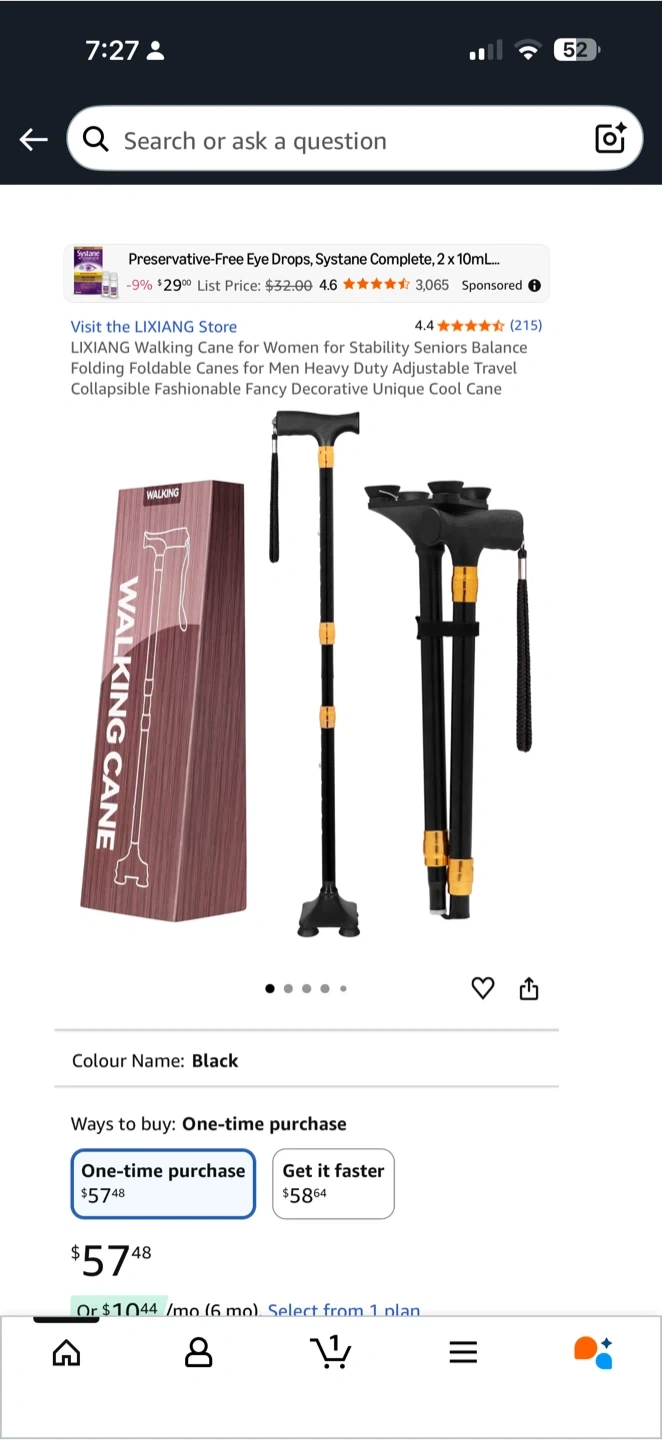 LIXIANG Walking Cane - Foldable & Adjustable Black