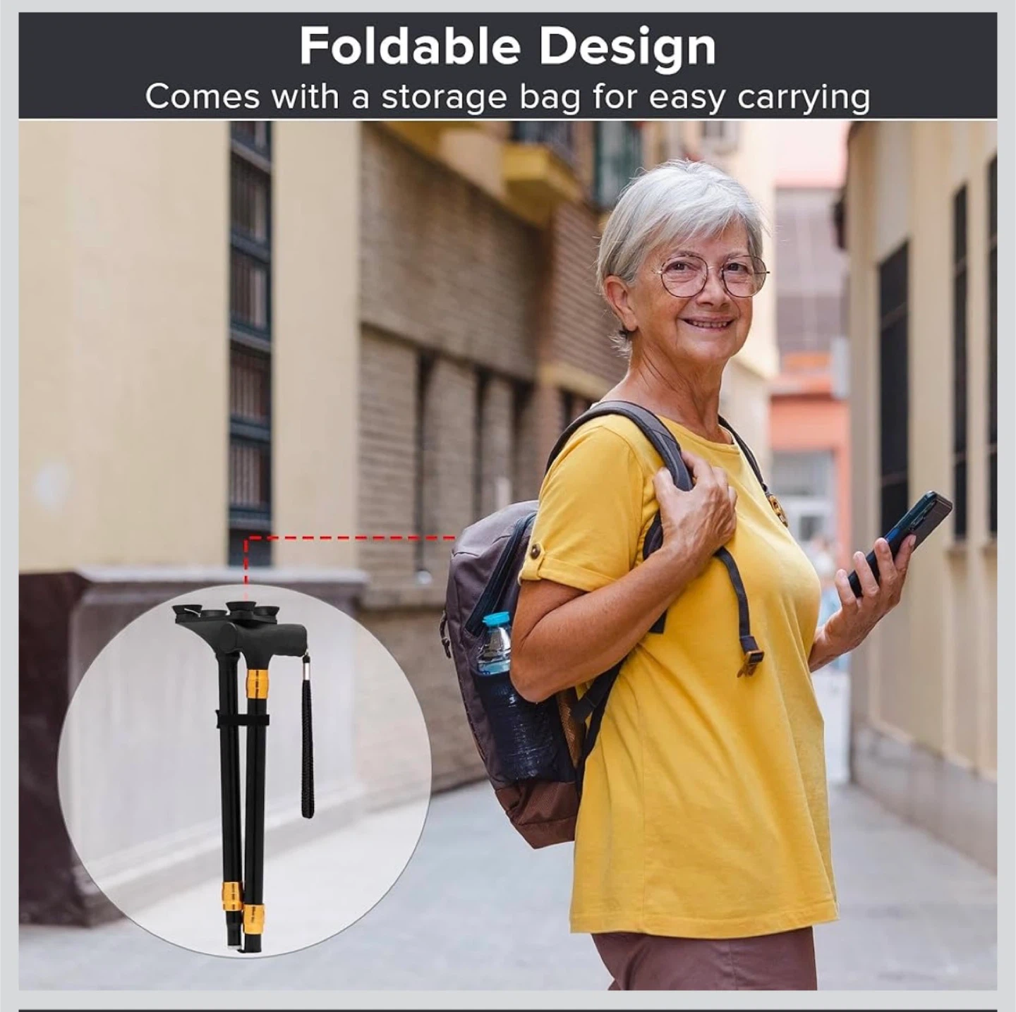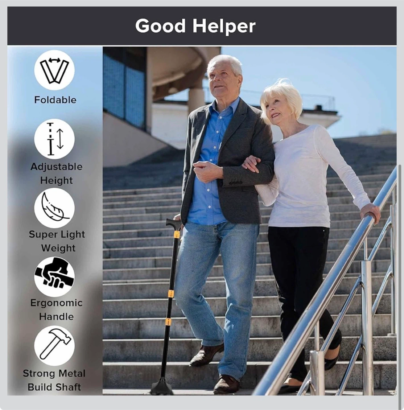 Looking for a reliable walking cane? This LIXIANG walking cane is foldable and adjustable for the most comfortable height. It's super lightweight and has an ergonomic handle. The cane has a strong metal build shaft and comes with a storage bag for easy carrying!