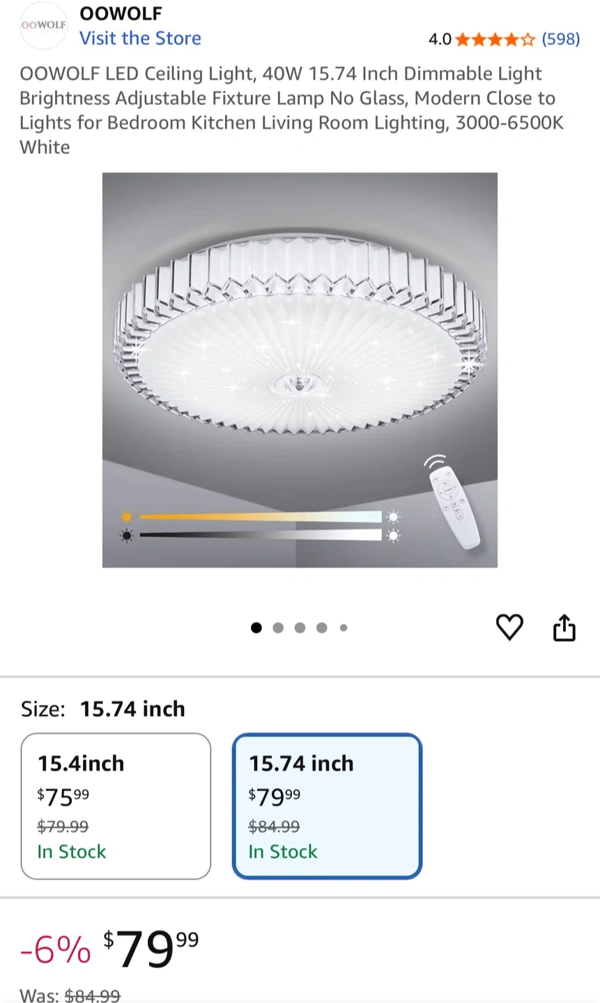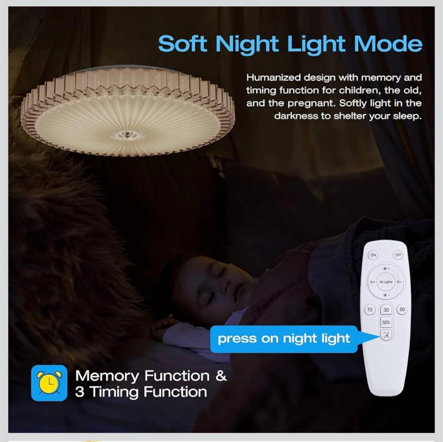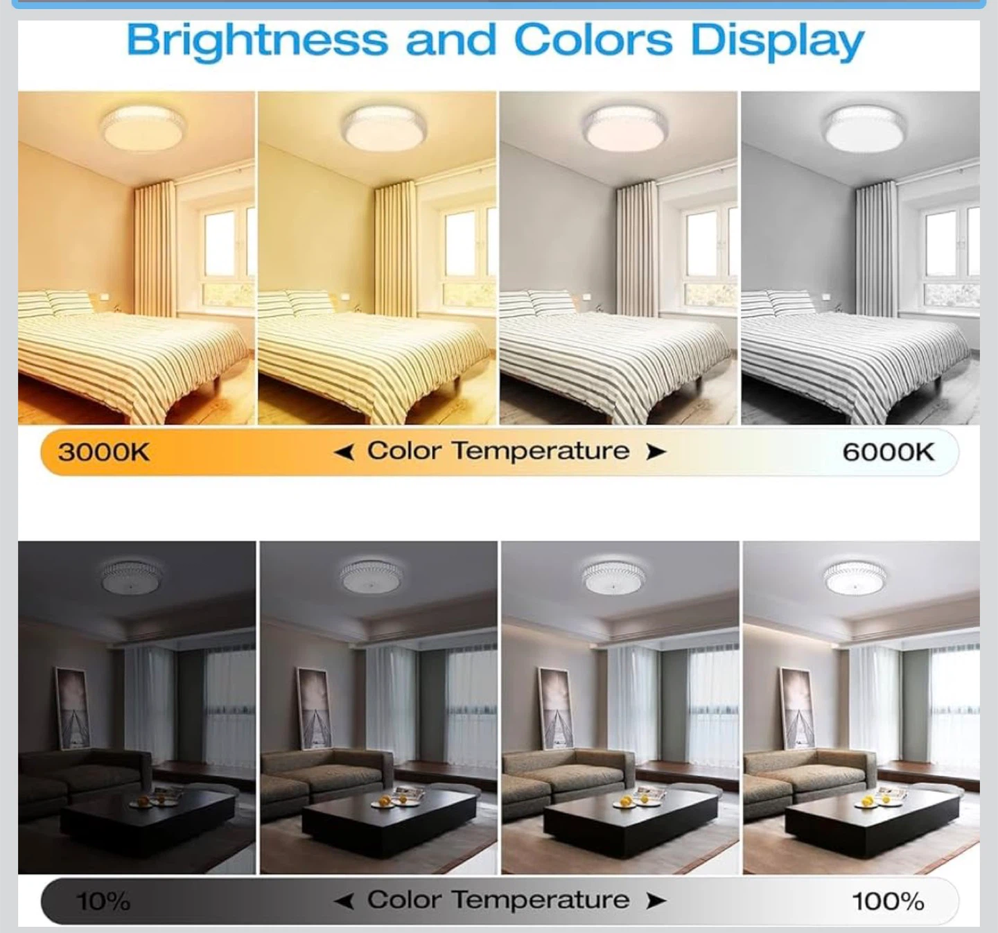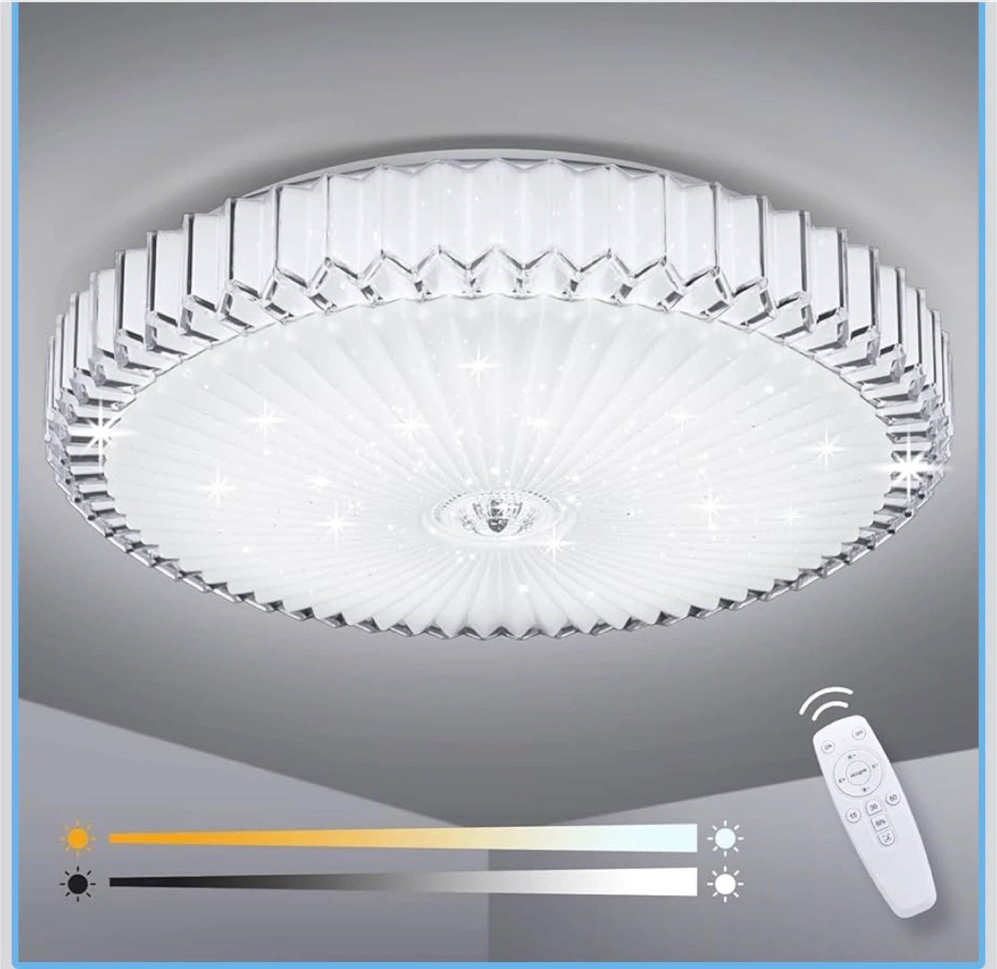 Looking to brighten up your space? I'm selling an LED ceiling light that comes with a remote control! It's dimmable and offers adjustable brightness and colour temperature (CCT). Features include a night light mode, timing functions, and a memory function. It's 40cm (15.74 inches) in diameter and 8cm (3 inches) thick.