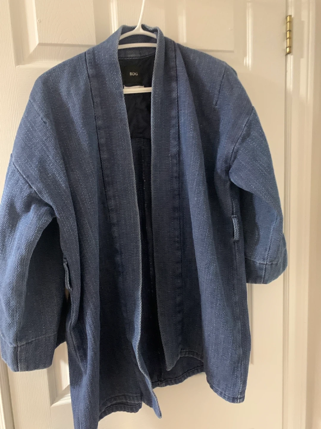 A stylish blue kimono jacket from BDG! It's in great condition and ready for a new home. Perfect for layering or adding a unique touch to your outfit