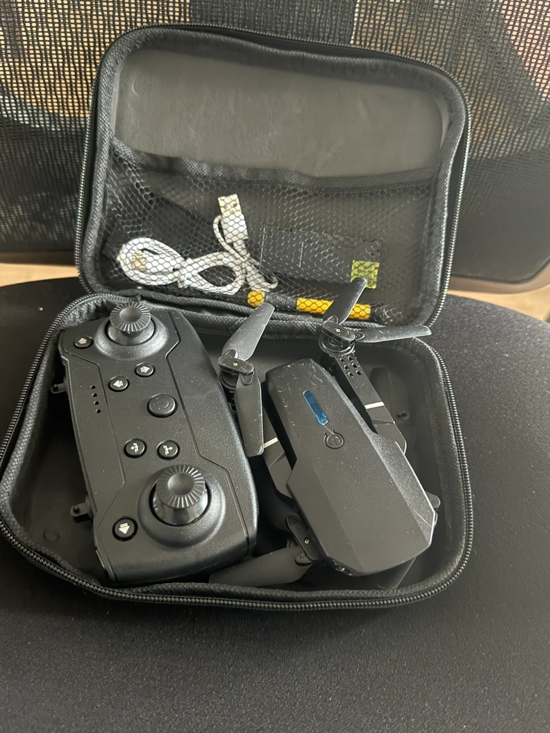 Selling a drone in great condition! It comes with its controller and a carrying case for easy storage and transport. Also included is a charging cable. Ready for some fun flights!