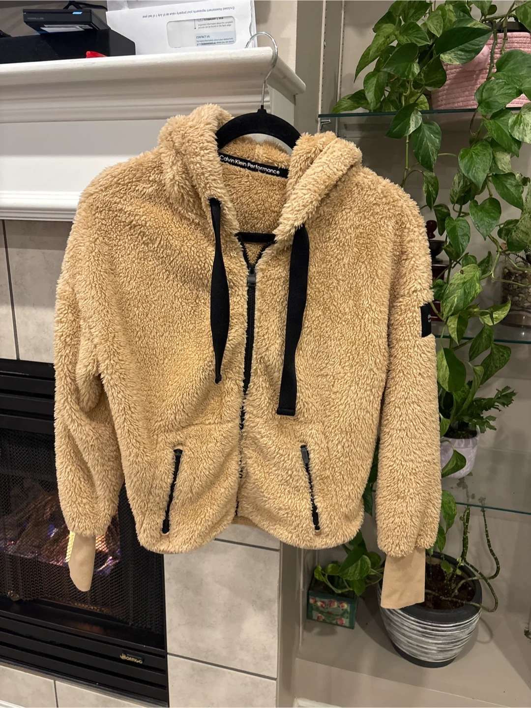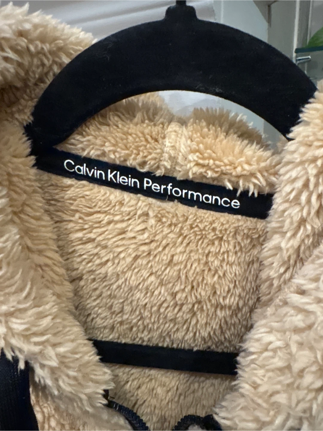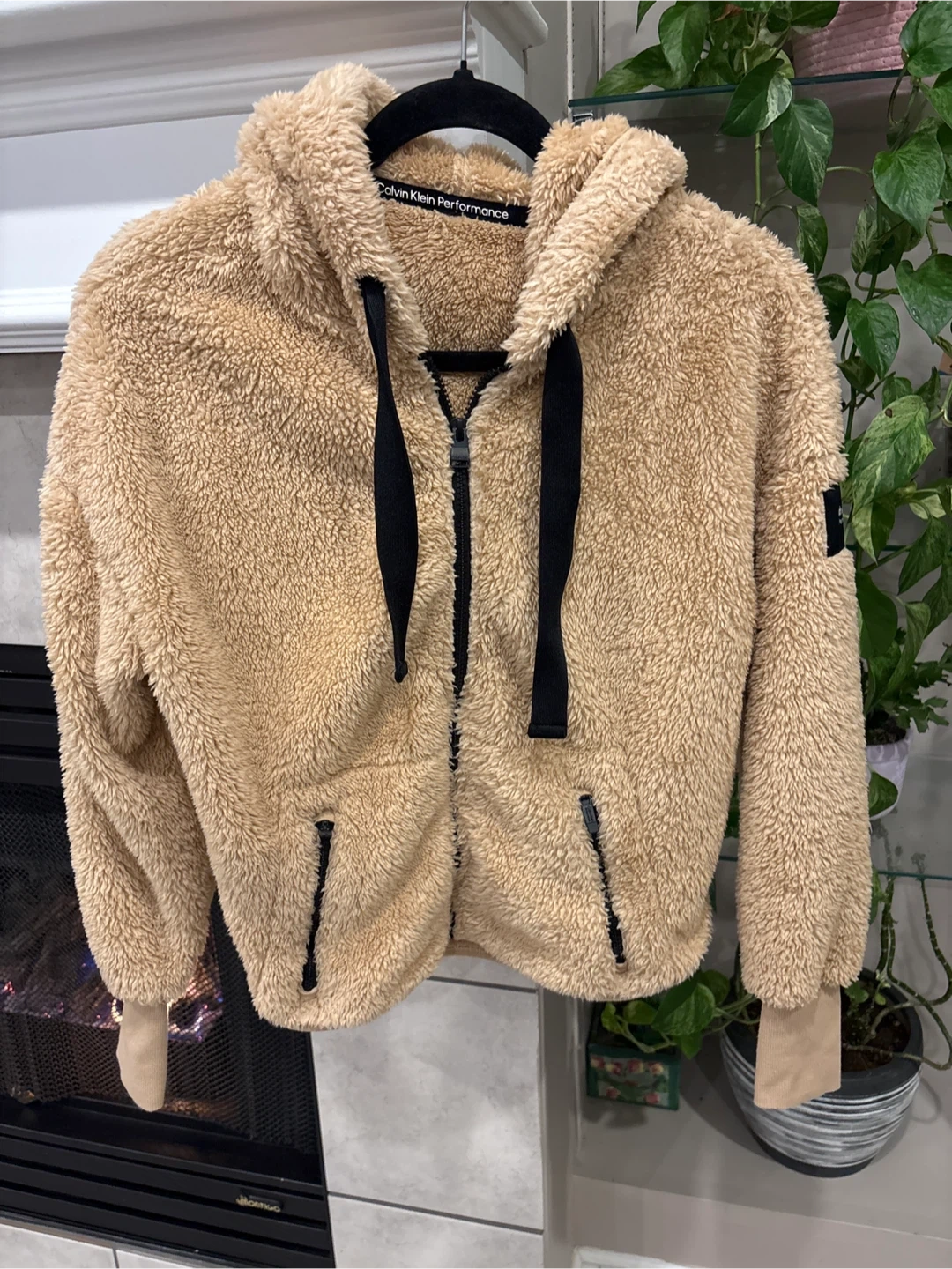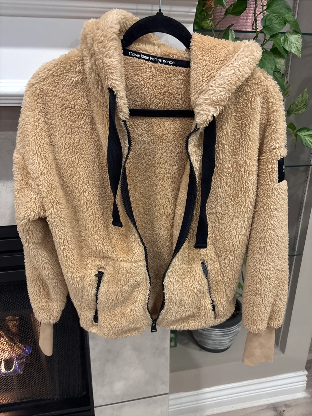 Cozy up in this super soft Calvin Klein Performance sherpa hoodie! It's a lovely tan colour and features a full zip front. Perfect for layering or just lounging around the house size M pick up walnut grove Langley