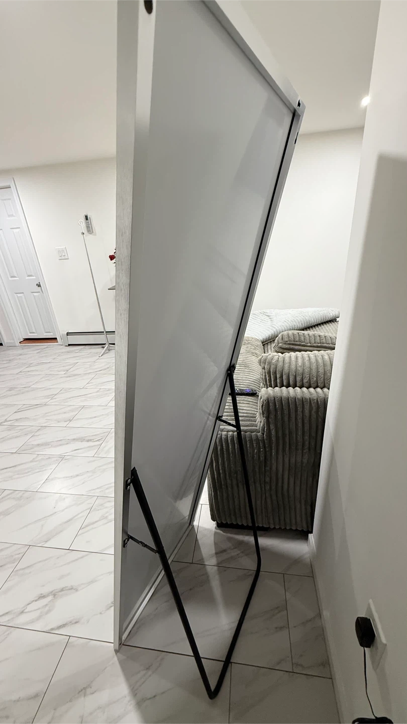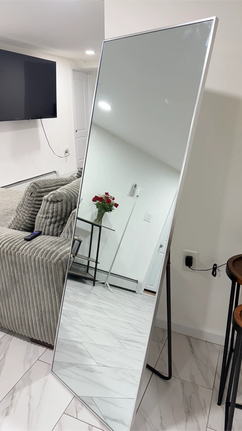 Selling a full-length standing mirror! It's in perfect condition and ready to brighten up any room. The mirror has a sleek design with a clean frame and sturdy stand