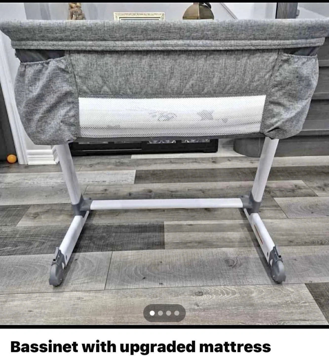 Brand NEW baby bassinet with upgraded mattress, never used even once. Bought but not needed, so it’s in perfect, like-new condition.