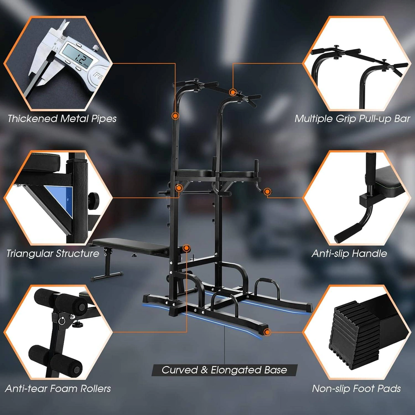 Adjustable power tower (pull-ups, dips, push-ups, bench)
