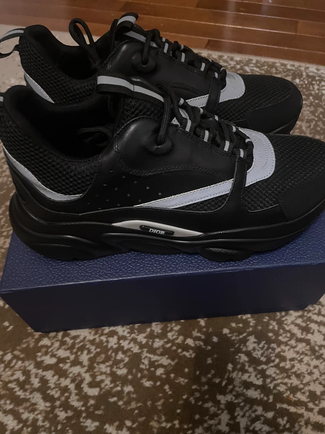 Selling a pair of Dior B22 sneakers in black. The shoe can fit size 9 and 9.5 and the box comes with everything