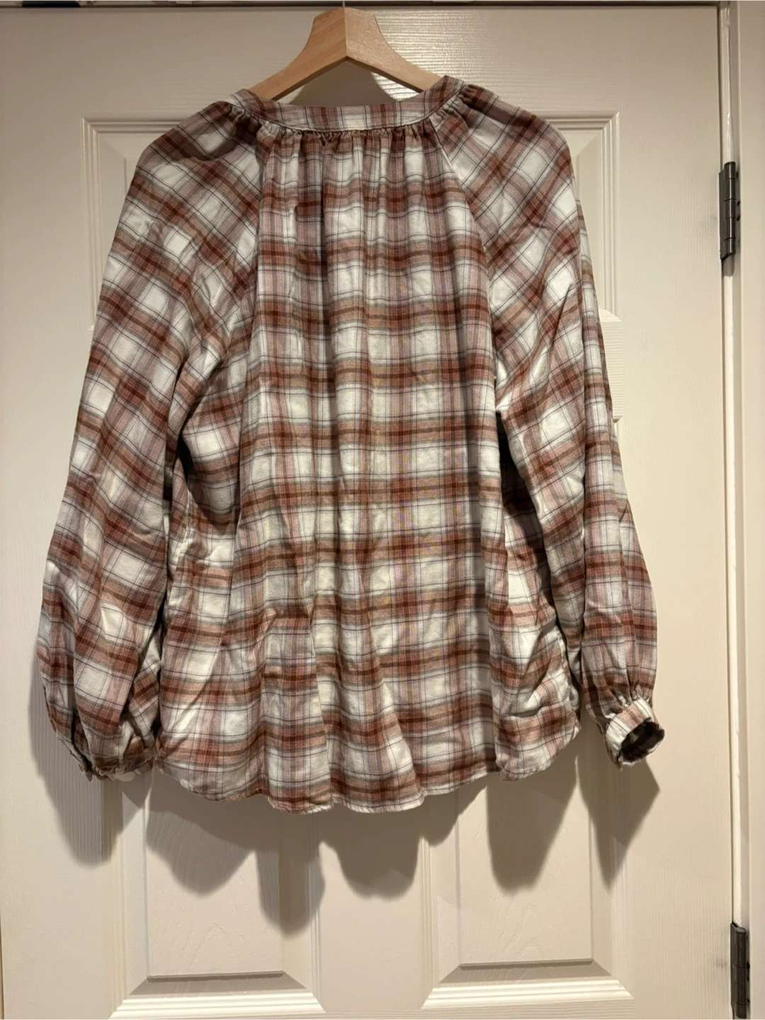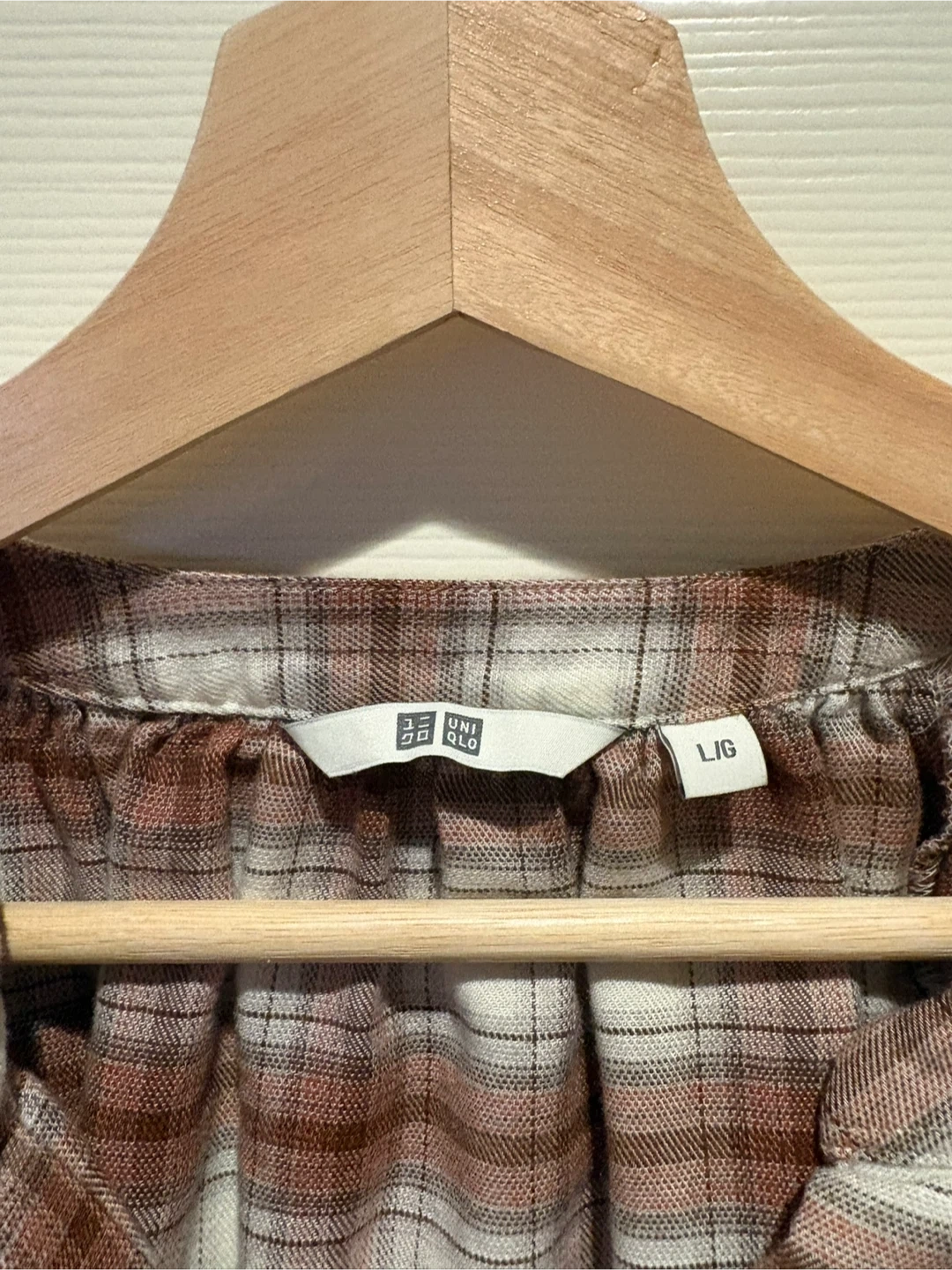 Cozy up in this Uniqlo flannel shirt! It features a classic plaid pattern in neutral tones. This shirt is a size large and is perfect for layering or wearing on its own. It's in great condition and ready for a new home!