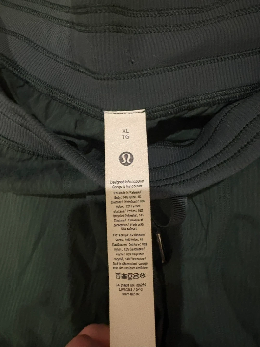 Selling a pair of Lululemon cargo pants in size XL. They're a dark green colour and very comfortable. I wish I could keep them but they are too big for me now.
