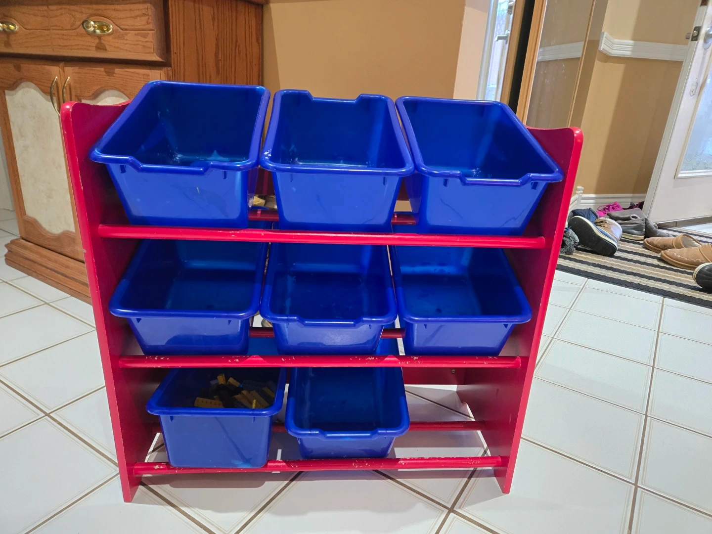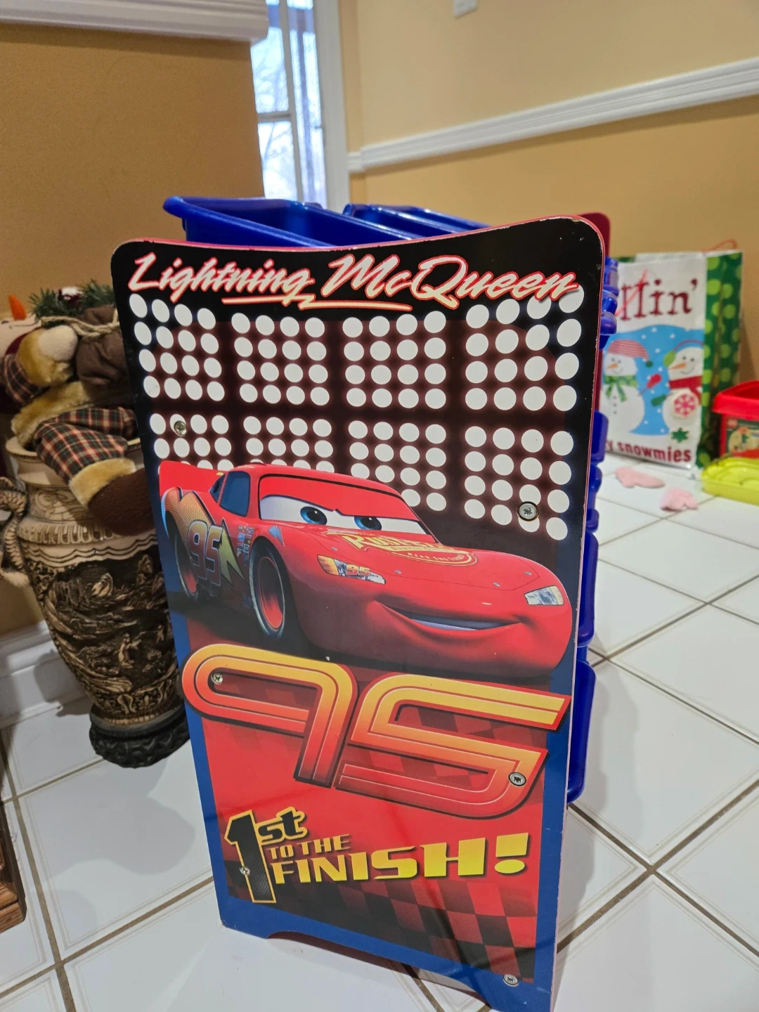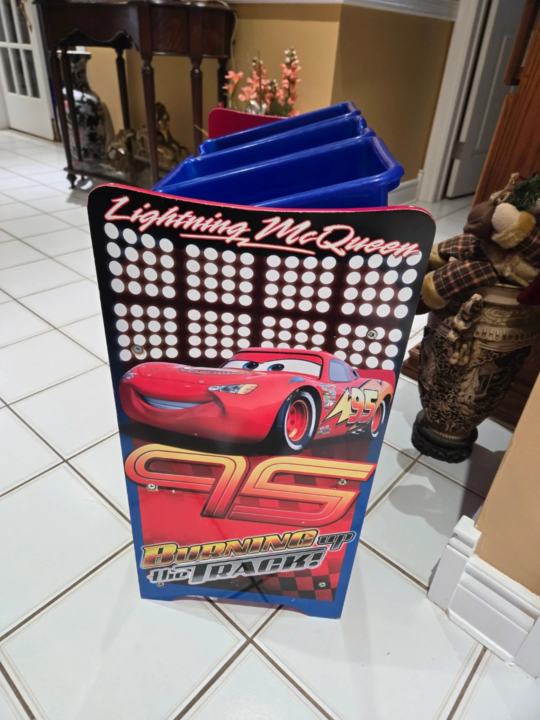 Selling a Disney Cars Lightning McQueen toy organizer! It features a colourful design with Lightning McQueen. Perfect for keeping your little one's toys neat and tidy. It has 9 blue bins for storage.