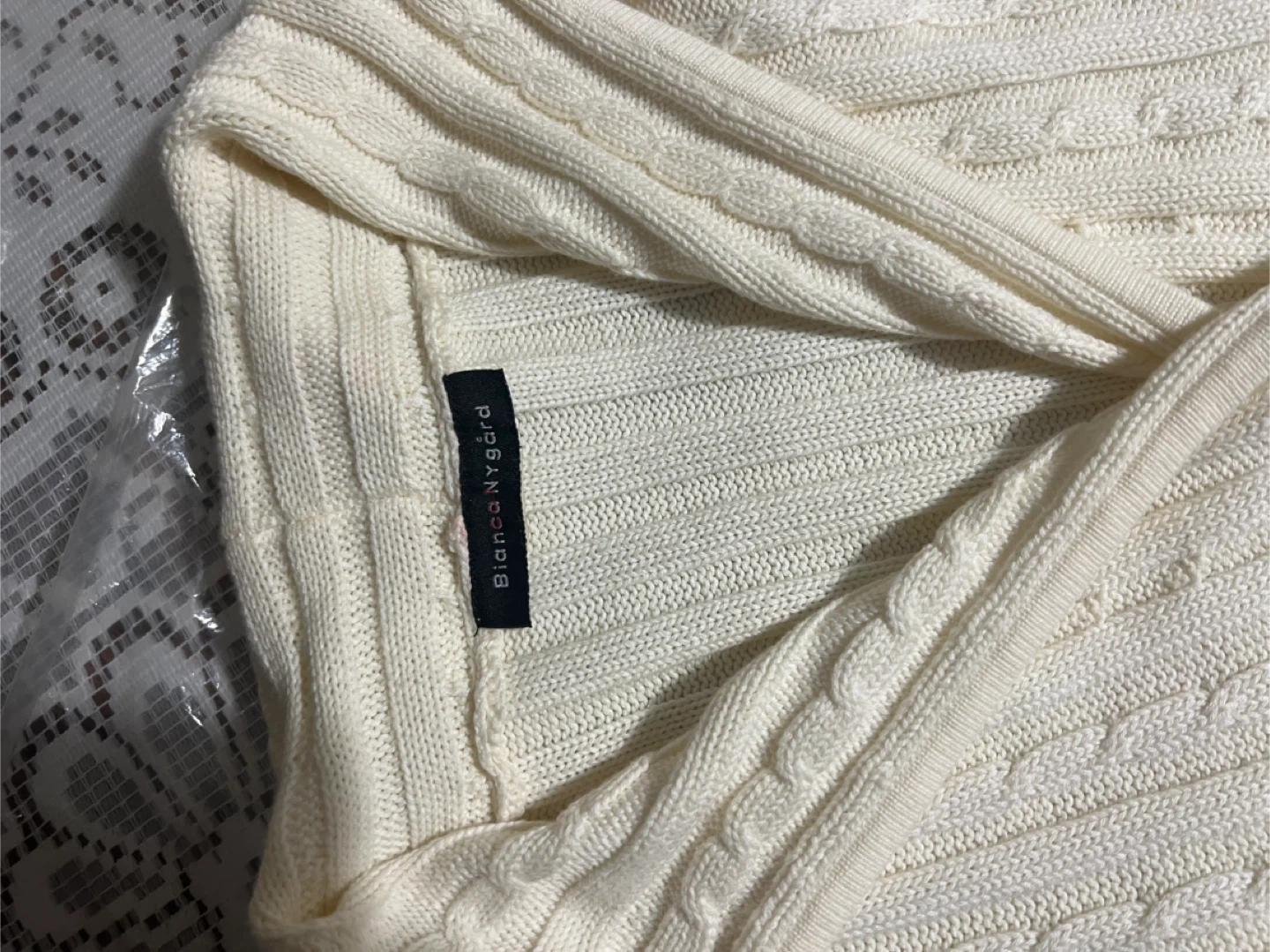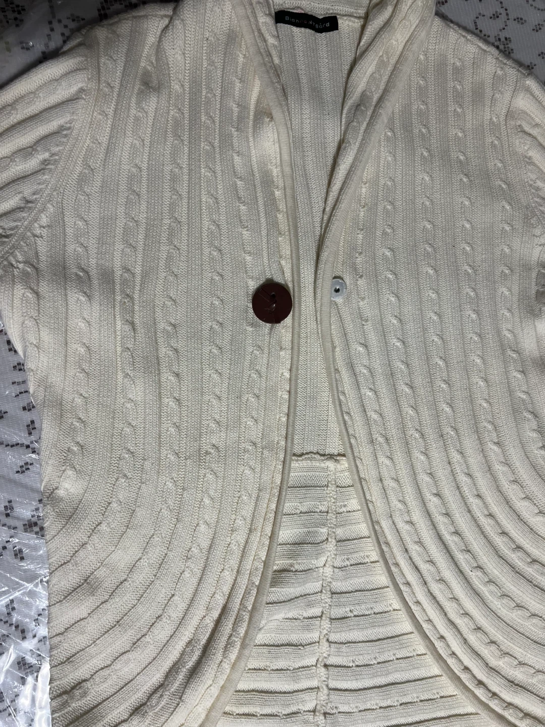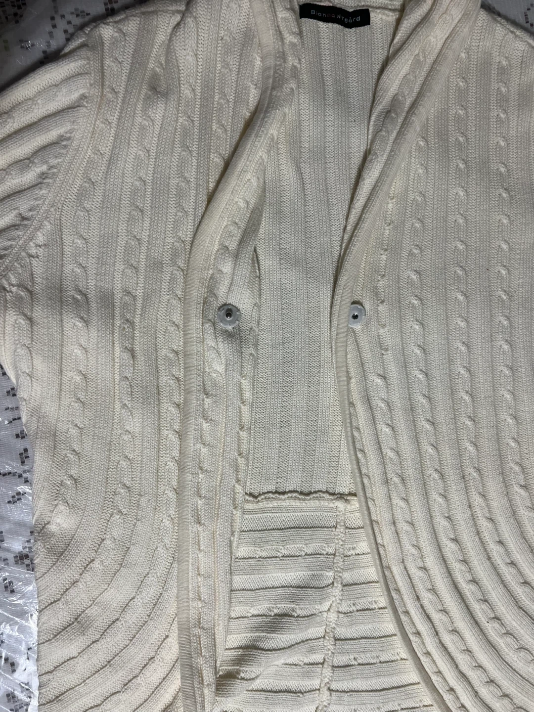 Selling a Bianca Nygard cardigan in a cream colour.