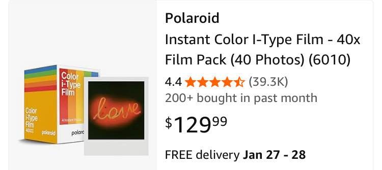 1 / 41 / 4Buy & SellPolaroid Instant Color I-Type Film - 40x Film PackPolaroid Instant Color I-Type Film - 40x Film Pack$95New Polaroid Instant Color I-Type Film - 40x Film Pack (40 Photos). Feel free to message if you have any questions!WHERE TO MEETCheck LocationView MapSELLERverifiedShirinBrock Ridge25116 reviews0 chats·0 favorites·6 viewsSEND CHAT TO SELLERHi Shirin! I’m interested in your listing.Hi Shirin! I’m interested in your listing.Get the Karrot app to chatSign In to chat
