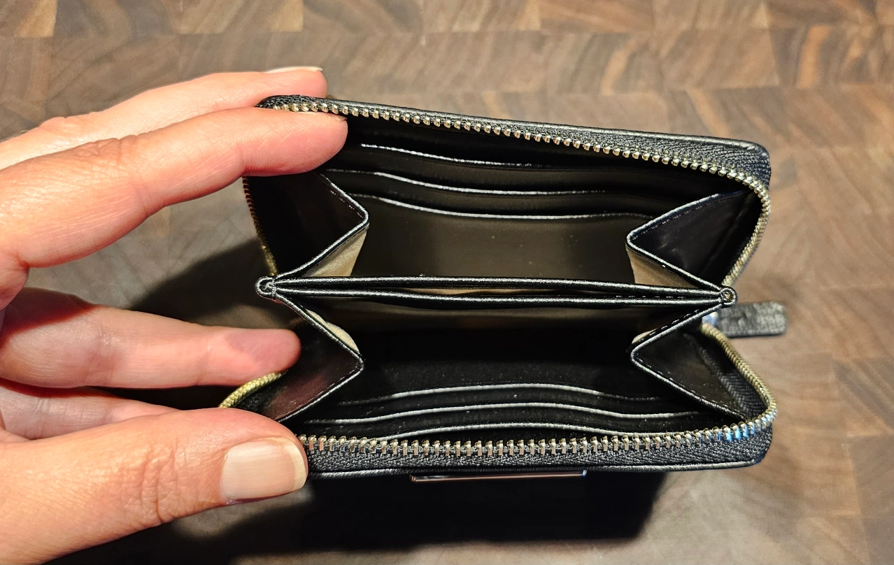 105Black leather 6 card slots, zipper on the back and zipper closure