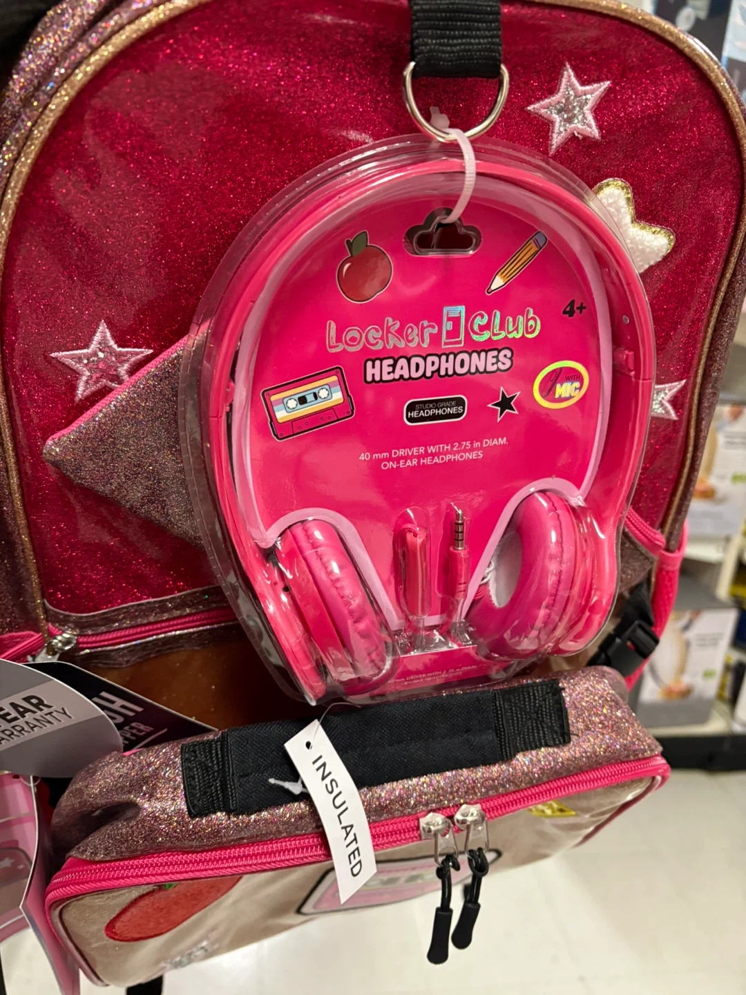 I have a Locker Club backpack with insulated compartment, matching pencil case, and headphones for sale. The headphones are 40 mm driver with 2.75 in diam. on-ear headphones. It's perfect for kids 4+