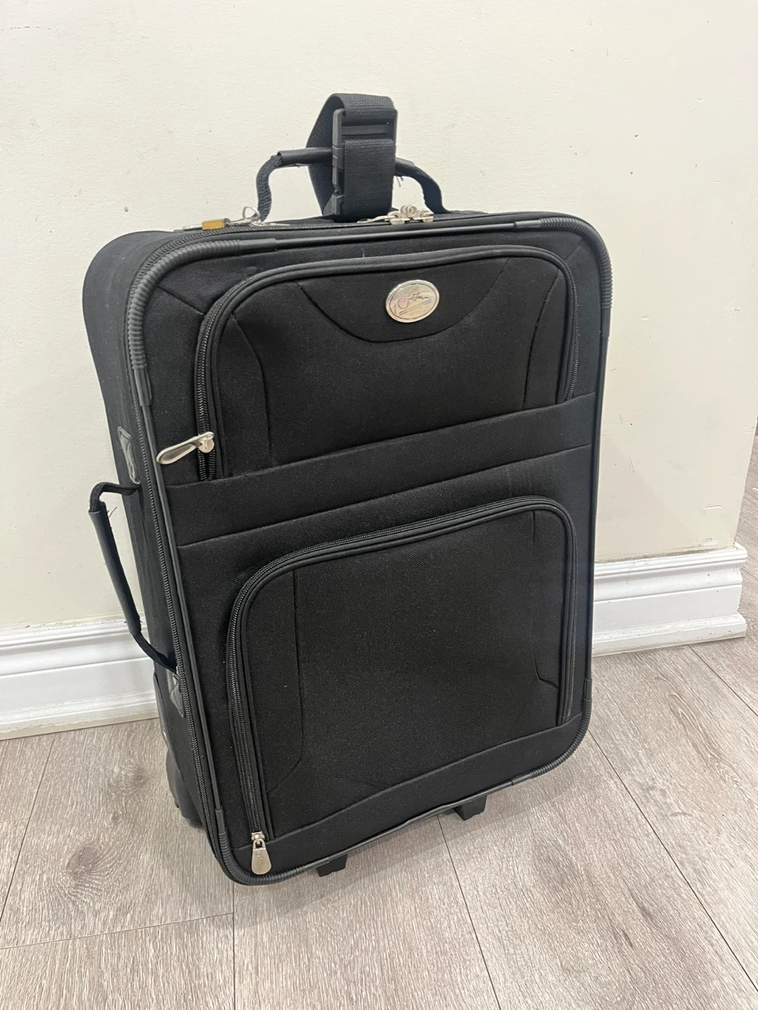 Looking to sell this carry-on luggage in black. It's in great shape and ready for your next trip! Perfect for weekend getaways or as a convenient travel companion. Comes with a lock and keys for added security
