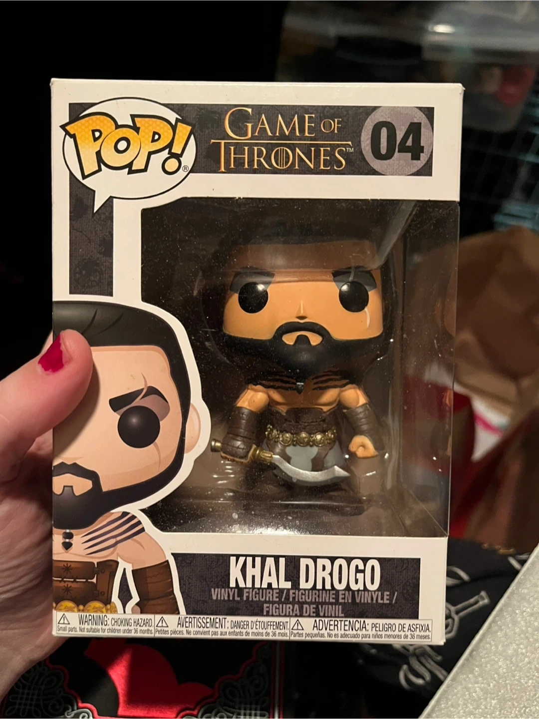 Selling a Funko Pop! vinyl figure of Khal Drogo from Game of Thrones. It's number 04 in the series. The box is in good condition, perfect for any collector!