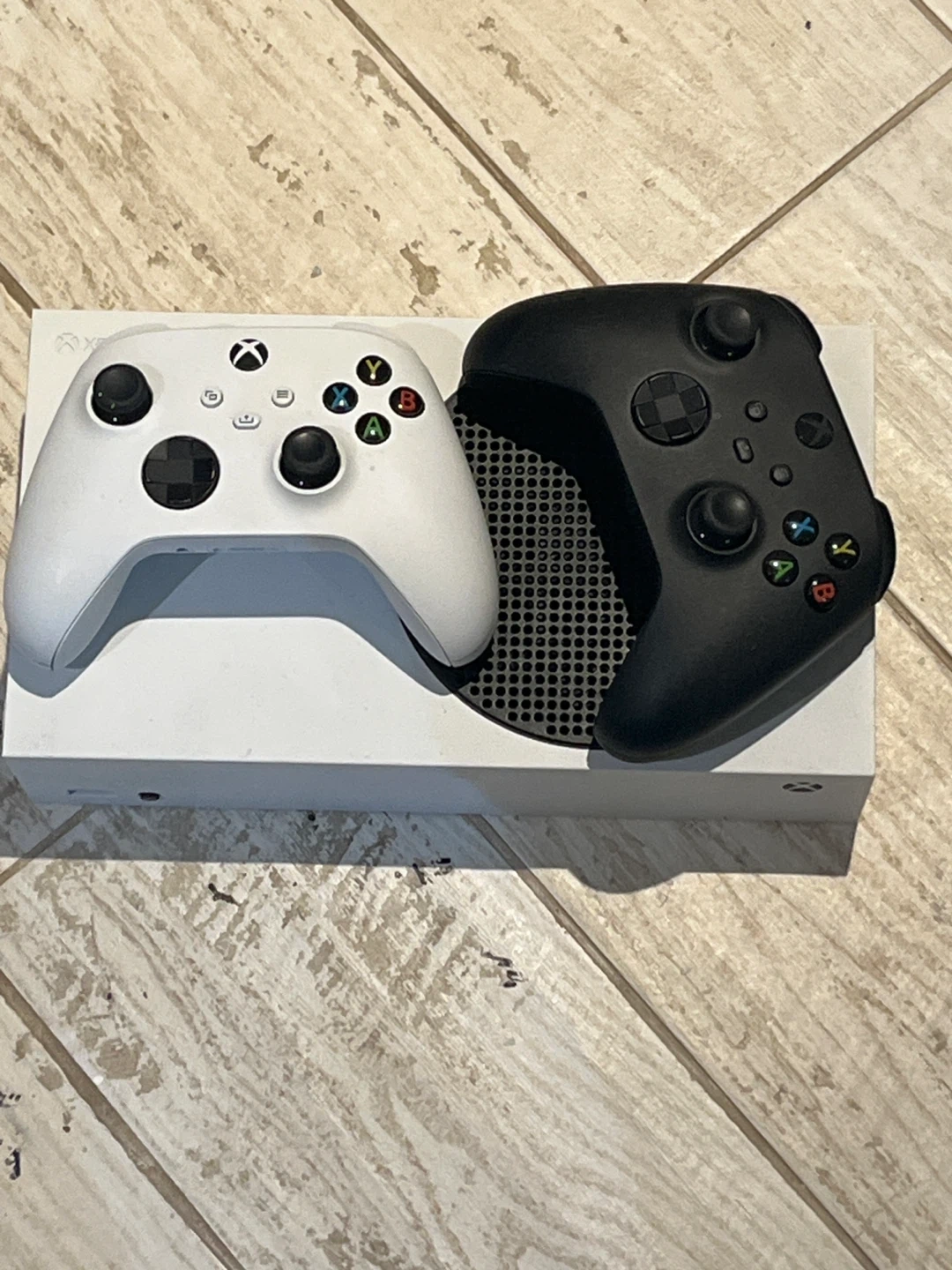 Selling an Xbox Series S console in great condition! It comes with two controllers, one white and one black. Perfect for gaming with friends or family!