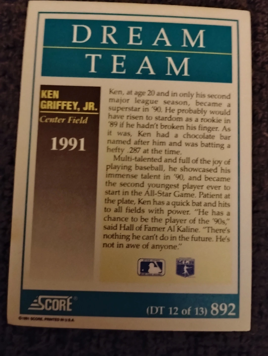 VINTAGE!! DREAM TEAM BASEBALL CARD - KEN GRIFFEY JR.