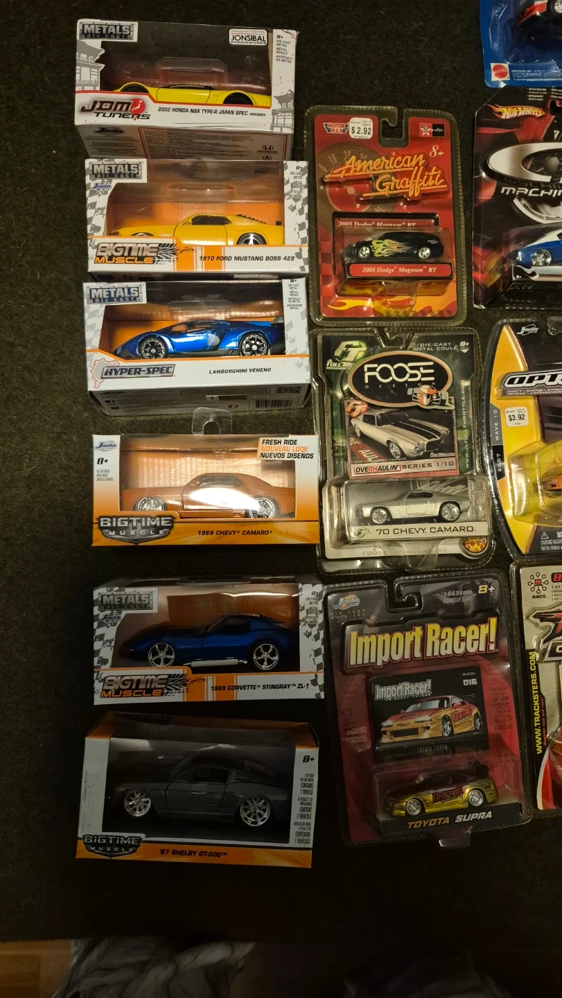 Selling a collection of diecast cars from various series, including Fast & Furious and Need for Speed! Great for collectors or fans of these franchises