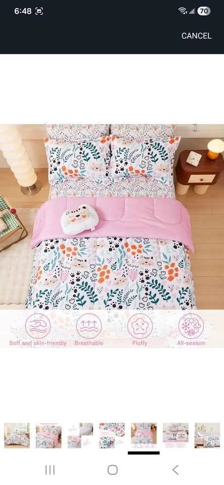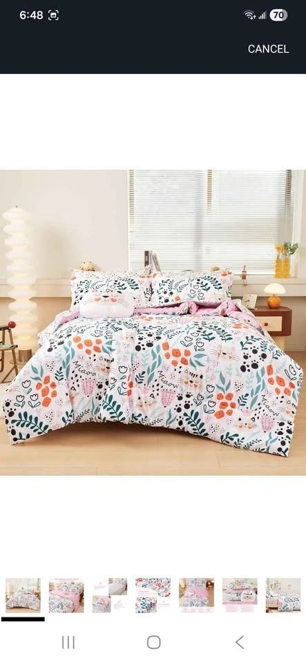 Brand new Mooreeke Twin Size Comforter Set for girls. Features a flower and cat design. Includes comforter, shams, and a decorative toy pillow. Made of ultra-soft microfiber. From a pet-free and smoke-free home. Feel free to message if you have any questions!