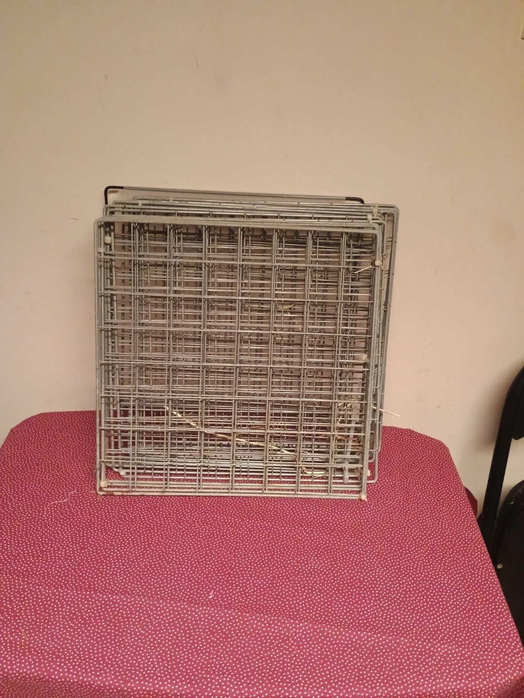 Selling some wire storage cubes! They're in used condition and perfect for organizing your space. C&C metal grids. No connector. It has been used a a fence for my Guinea pigs. 14 panels great for making custom cages for guinea pigs. They are connected with zip ties but can be easily removed if needed and reconnected with new zip ties