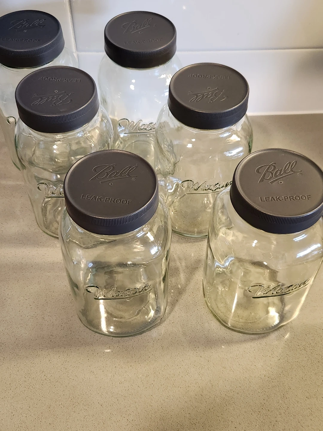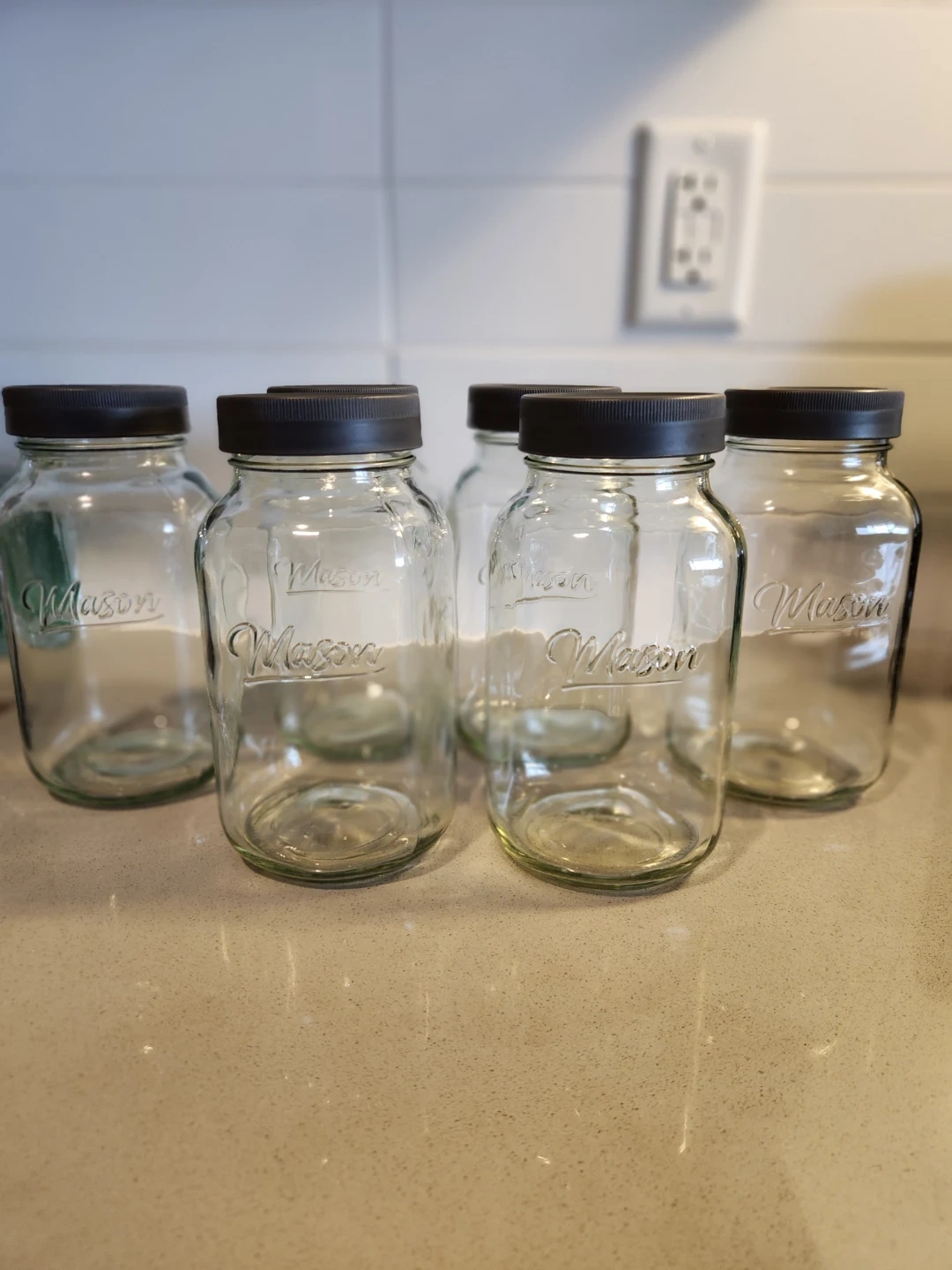 I'm selling a set of (6) regular mouth, 1L Mason jars!