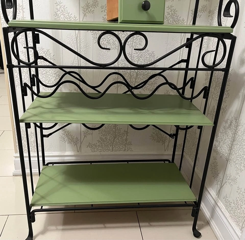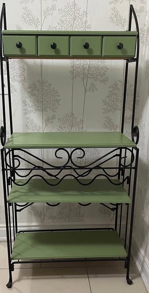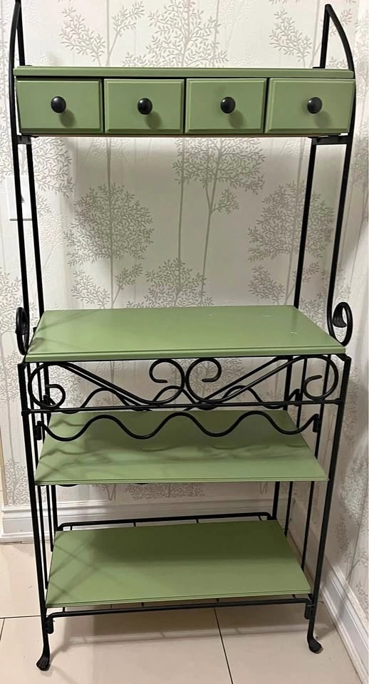Very sturdy bakers rack, excellent for wine bottle storage. Includes 3 solid shelves and 4 small drawers. Dimensions: 28” long x 14” wide x 61” high. Pick up in Schomberg (Hwy 27 south of Hwy 9).