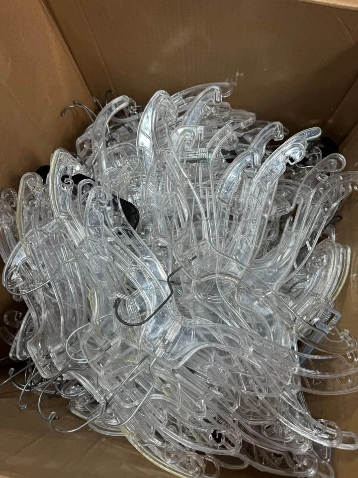 Asking 50 cents each. These are not flimsy and can handle heavy items like hoodies or jackets. I have black and clear ones as well. Feel free to message if you have any questions!