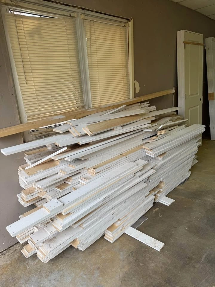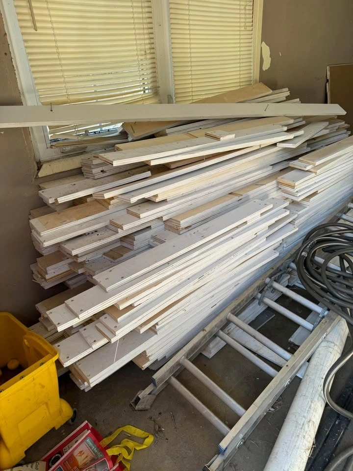 Mostly 8ft x 4in x 3/4 inch. There are lots of pieces cut in half. Message me to take all or what you need. Make me an offer. It’s all good wood and can be used for small jobs.