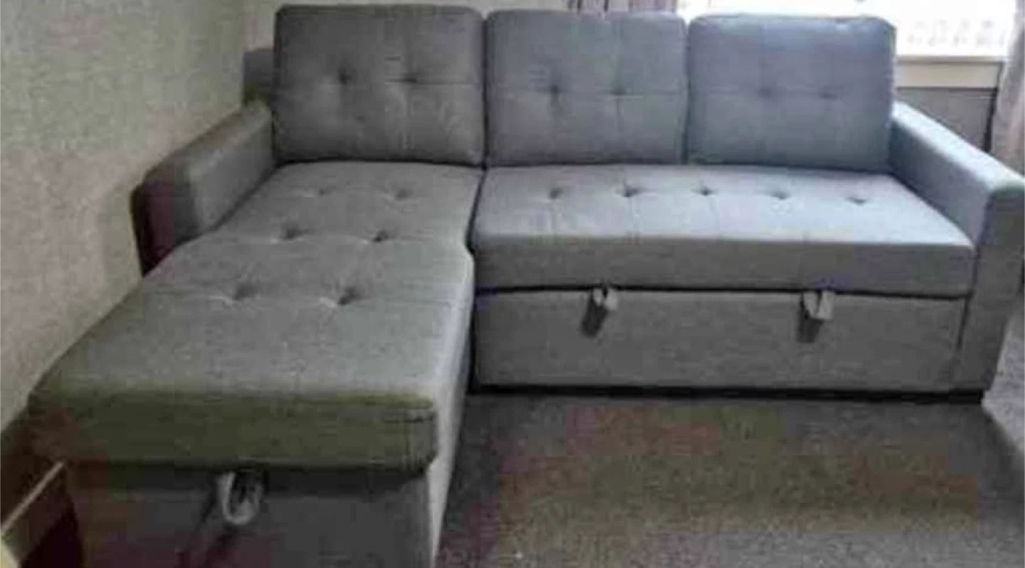 Selling a comfy grey sectional sofa! It features a convenient storage compartment, perfect for decluttering your living space. The sectional design makes it ideal for lounging and relaxing after a long day. It's in great condition and ready for a new home!