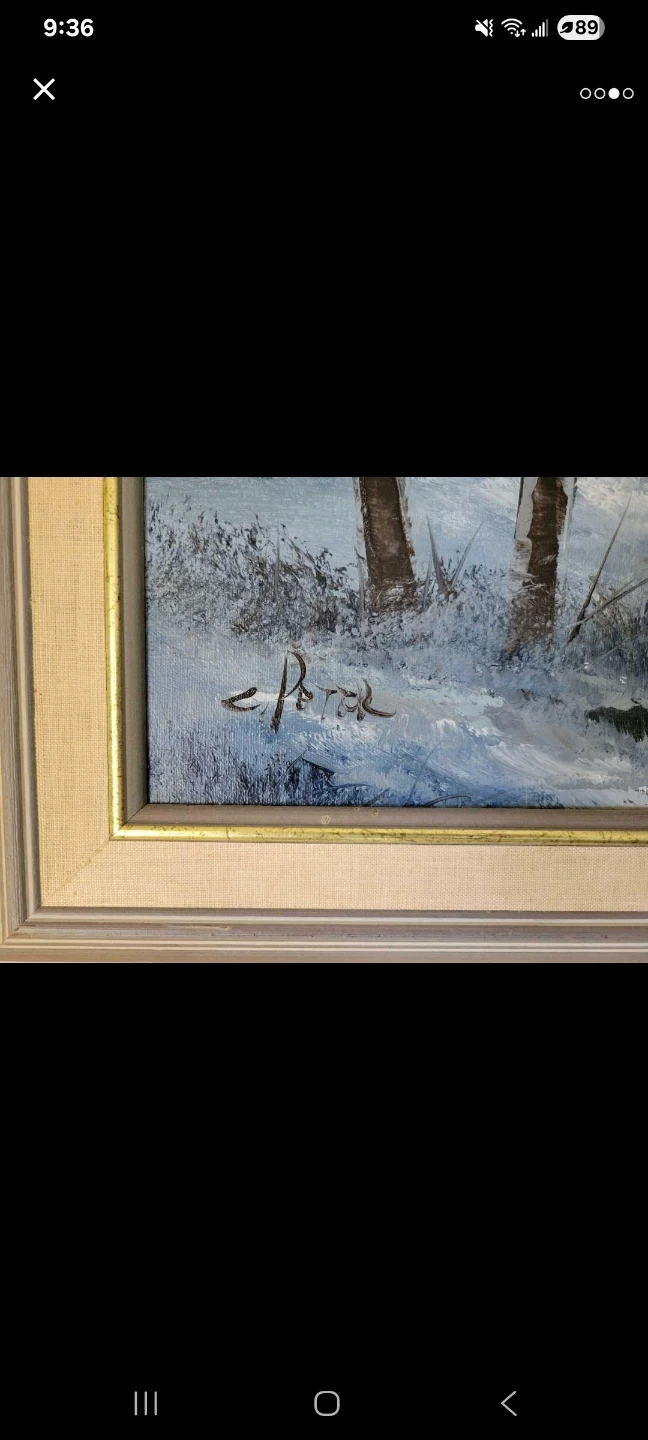 Beautiful winter landscape painting, framed and ready to hang! The artwork is signed.