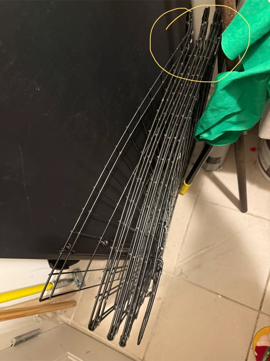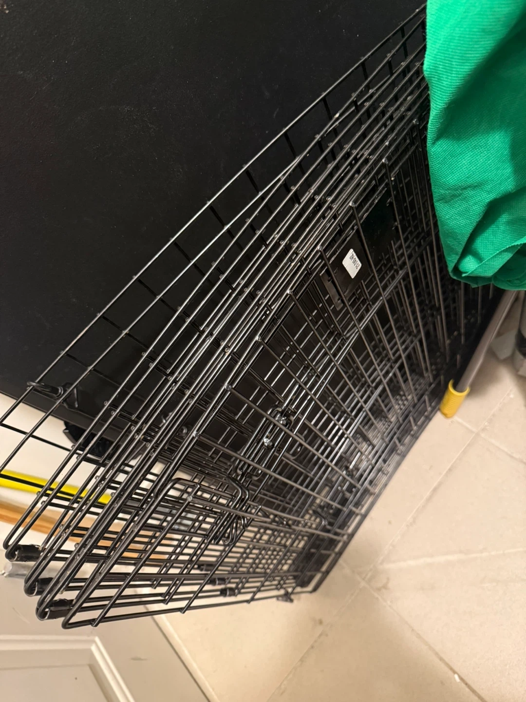 Metal dog crate — minor dent, does not affect use. Clean and secure. Lightly used since my dog didn’t like it.