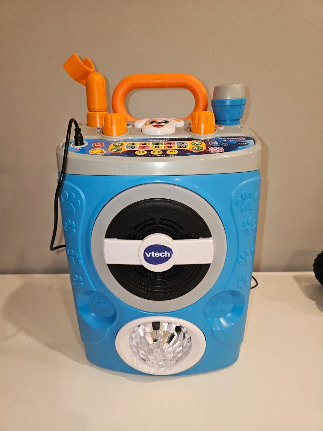 Get ready to rock with this VTech Kidi Superstar Jr. Karaoke! It's a fun, interactive toy that lets your little one sing along to their favourite tunes. The karaoke machine is in great condition and ready for its next superstar. Perfect for kids who love music and performing!