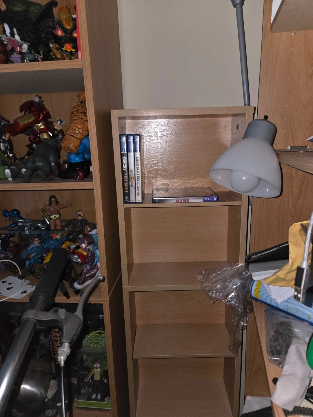 Selling a simple wooden bookcase. It's in good condition and ready to hold your books or display your favourite items! Perfect for a small space or to add extra storage to any room. It's the perfect size to hold DVDs or video games. Selling because I'm moving and don't own enough games to make it worth taking with me.