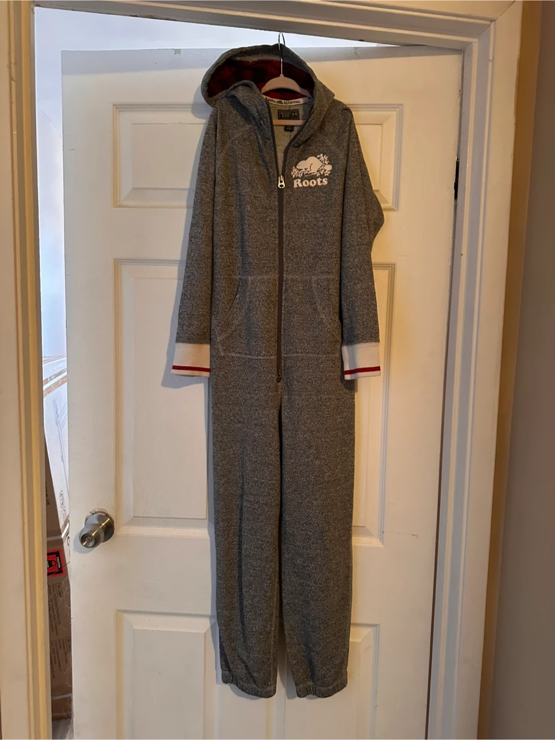 Cozy Roots Kids onesie in size M (7-8 years). It's in great condition and perfect for keeping your little one warm and comfy! Features a full zip and a hood. The material is soft and durable, ideal for lounging around the house or wearing outside