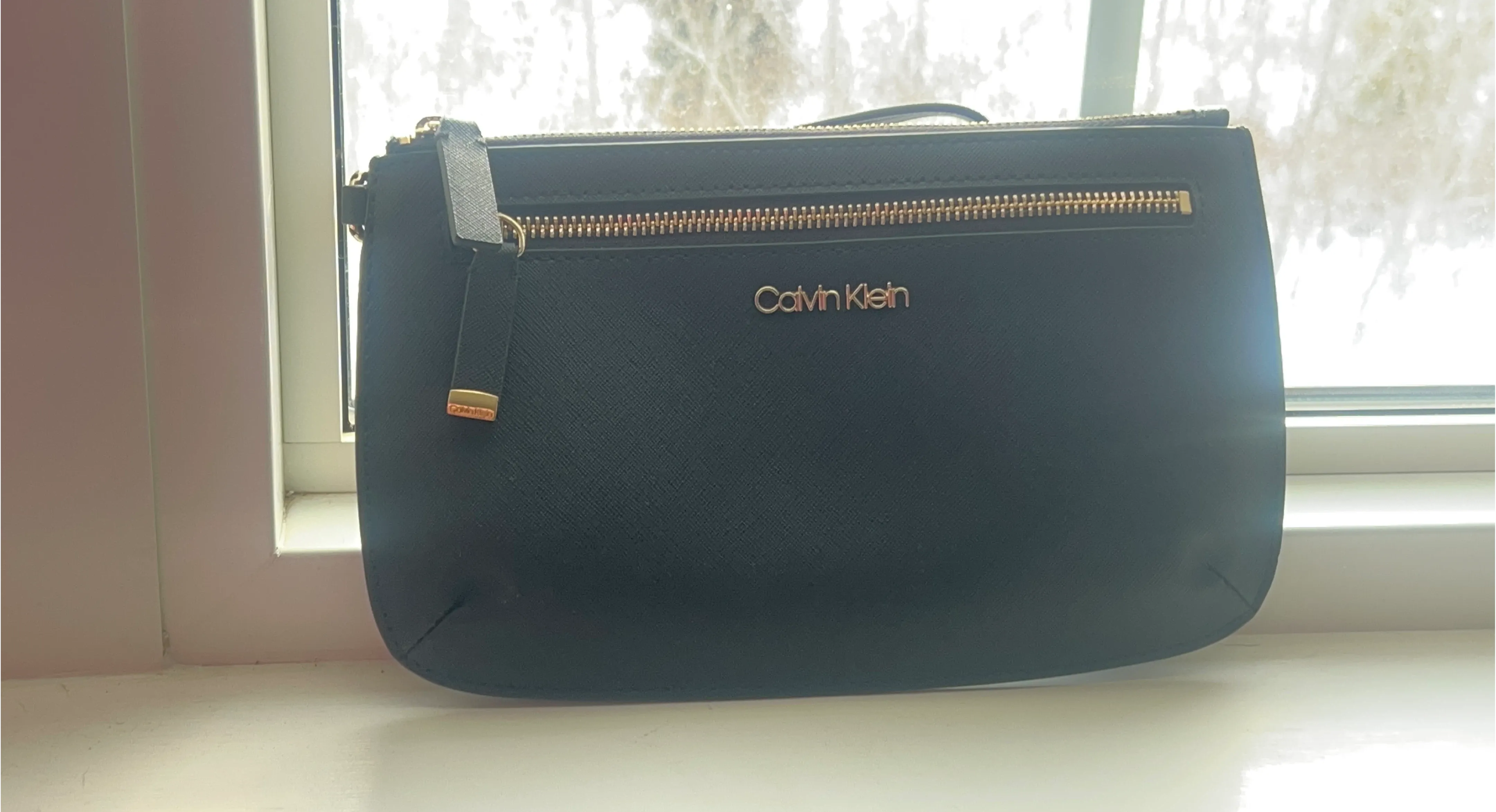 Selling a new Calvin Klein wristlet in black. It's in great condition and perfect for carrying your essentials! The interior lining features the Calvin Klein logo.