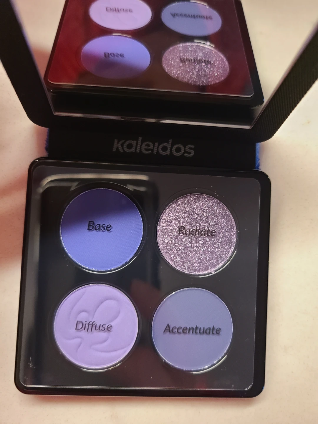 Kaleidos Quad Palette in Glowing Iris! This pressed pigment palette is cruelty-free and vegan. It features four beautiful shades.