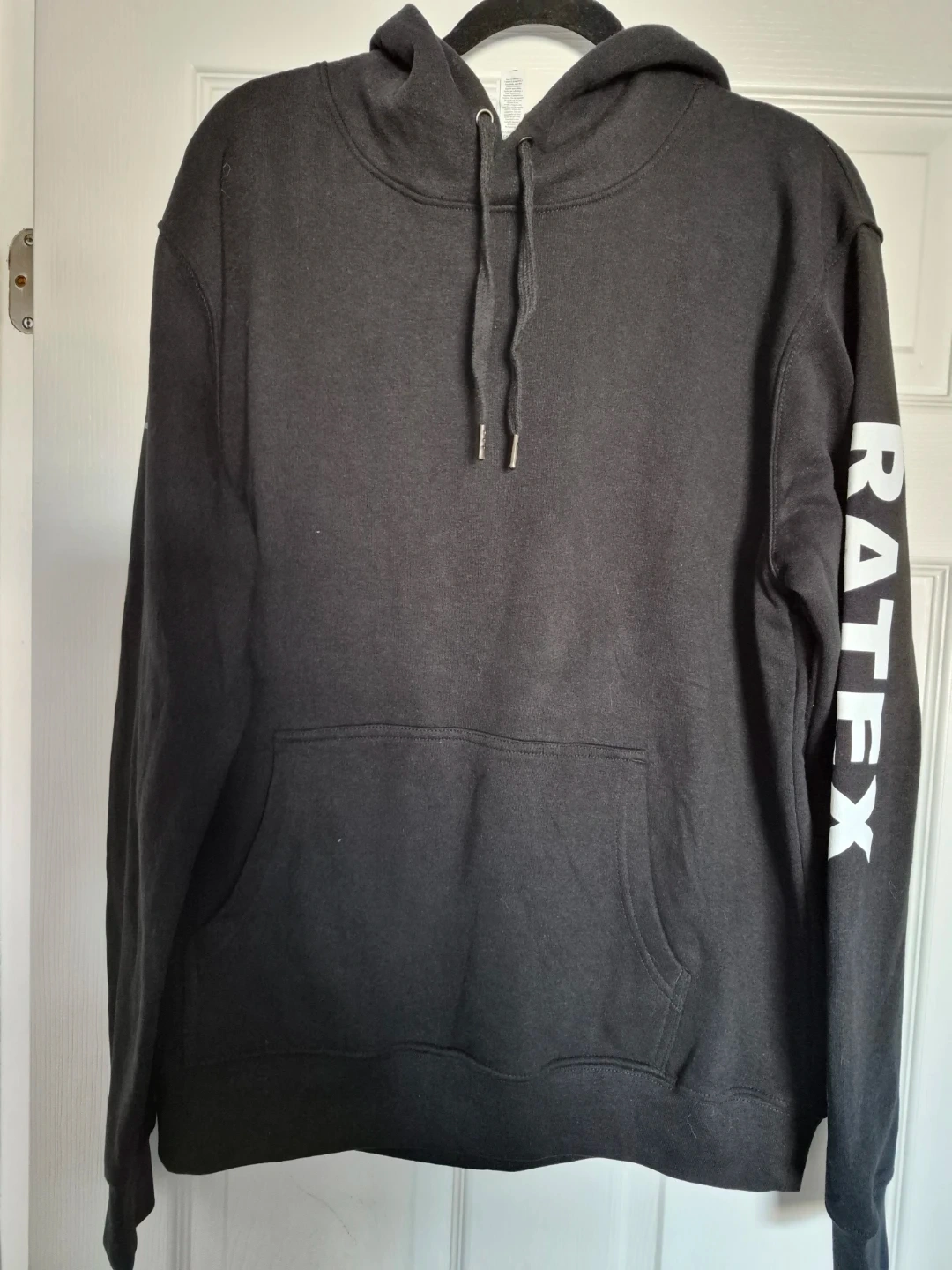 BRAND NEW Black Hoodie available is size Medium. The Logo on the side of the sleve says Ratex Electric! The hoodie is made from 100% cotton, so it's super comfy. Great for casual wear or layering up on cooler day.