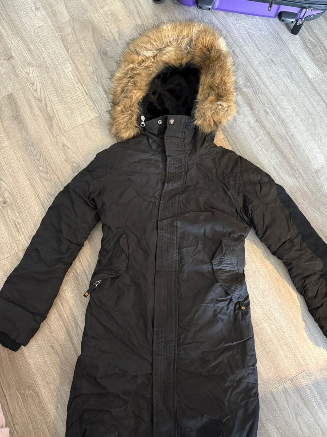 Selling a TNA black winter coat in size XS. It's in great condition and ready to keep you warm this winter! It has a fur hood, perfect for those extra chilly days. Pick up by the Eaton Center. $40