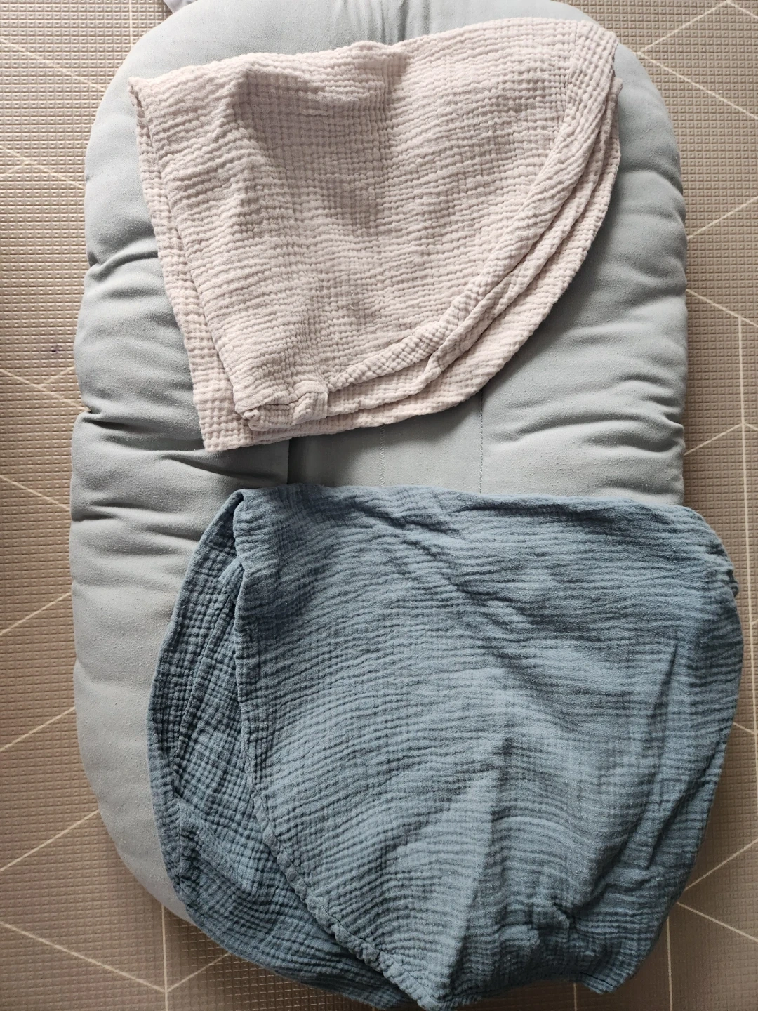 Snuggle Me Organic baby lounger in great condition! It's a comfy and safe spot for your little one to relax and play. Perfect for ages 0-8 months. Comes with two covers!