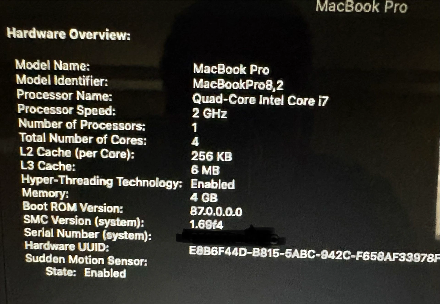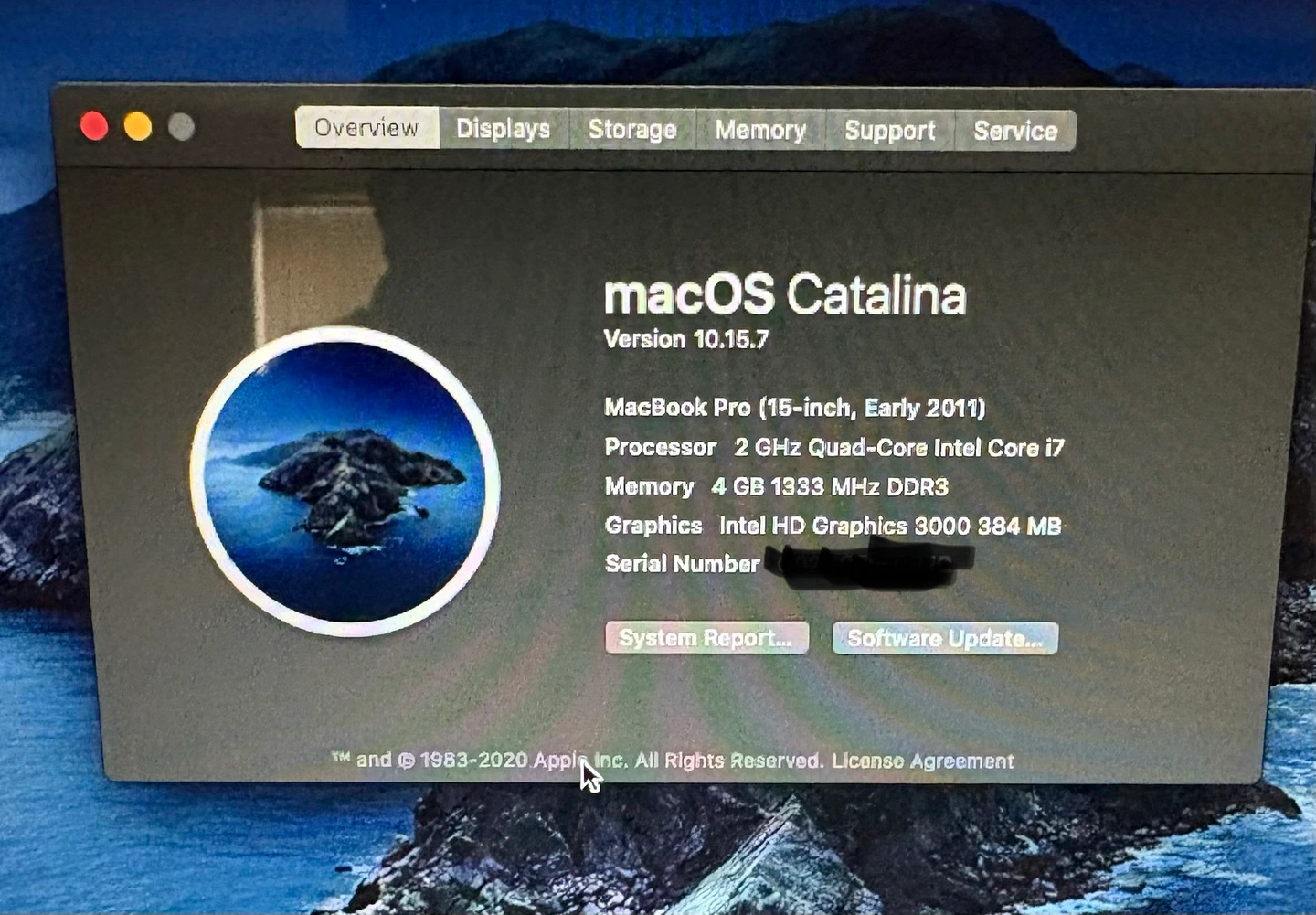 MacBook Pro 15” 2011 Intel Core i7 4Gb RAM 500G Catalina