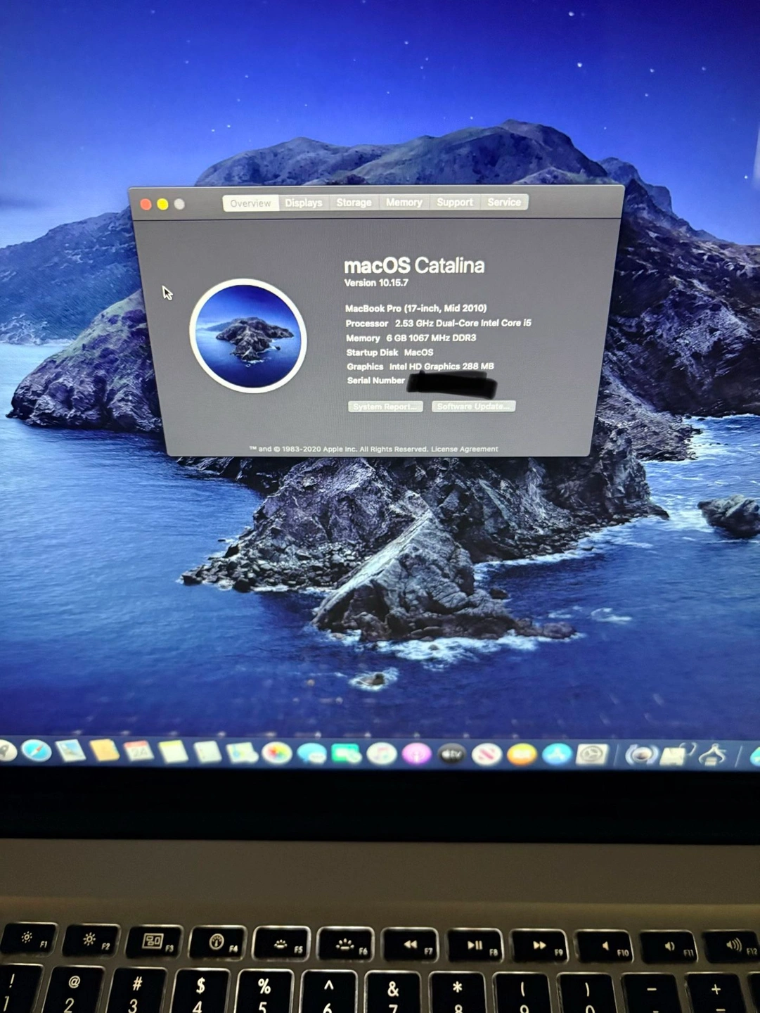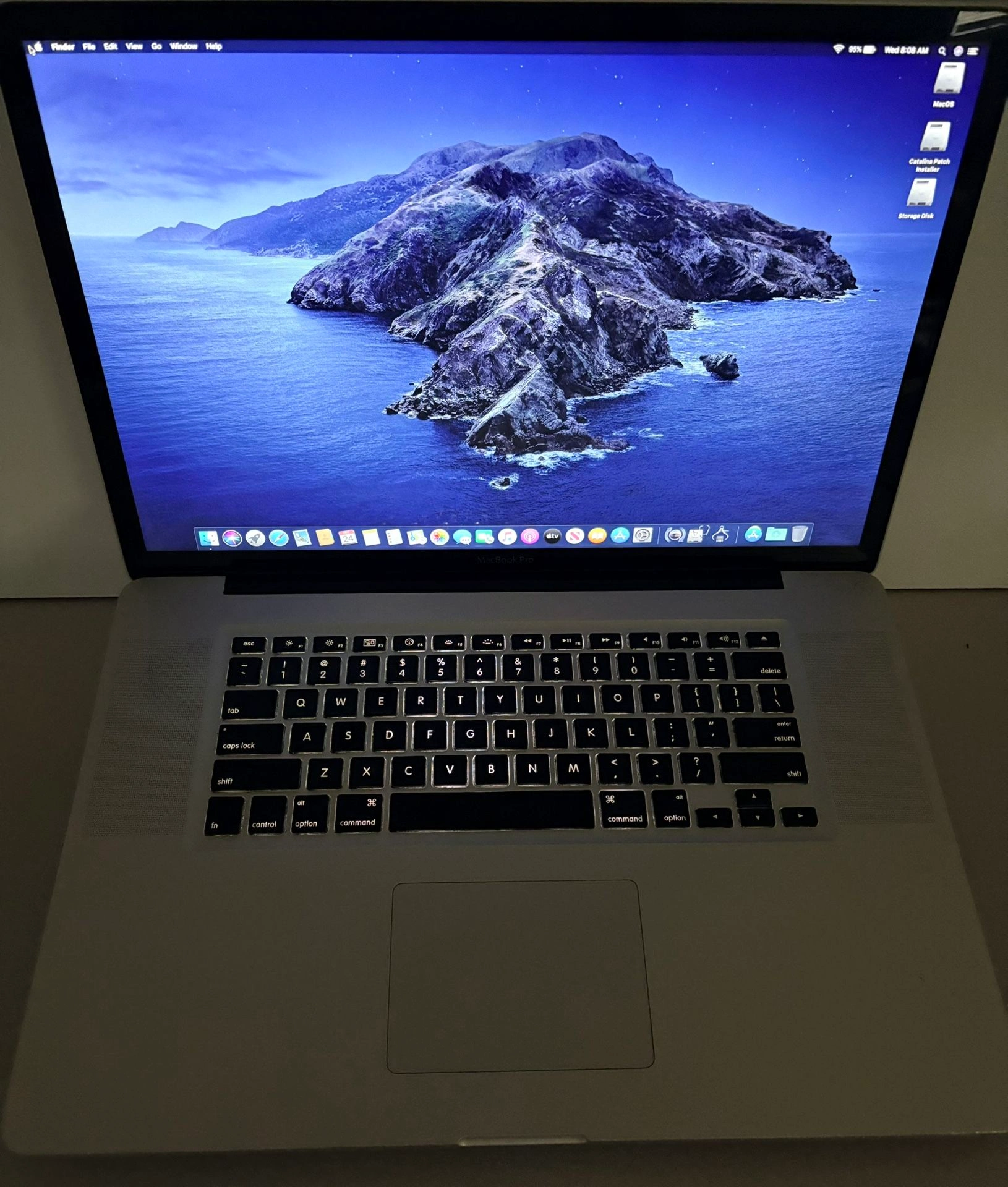 This is a massive 17" MacBook Pro A1297 with a dual-core Intel Core i5 processor running at 2.53 GHz. It has 8GB of RAM and a 500 GB SATA hard drive. The laptop includes a built-in webcam, Bluetooth, Wi-Fi, built-in speakers, multi-touch trackpad, backlit keyboard, and built-in microphone. It comes with MacOS Catalina operating system. This device offers a powerful computing experience, especially for those needing a larger screen size and substantial storage. Excellent condition. Completely refurbished. Includes MacOS Catalina recovery and charger.