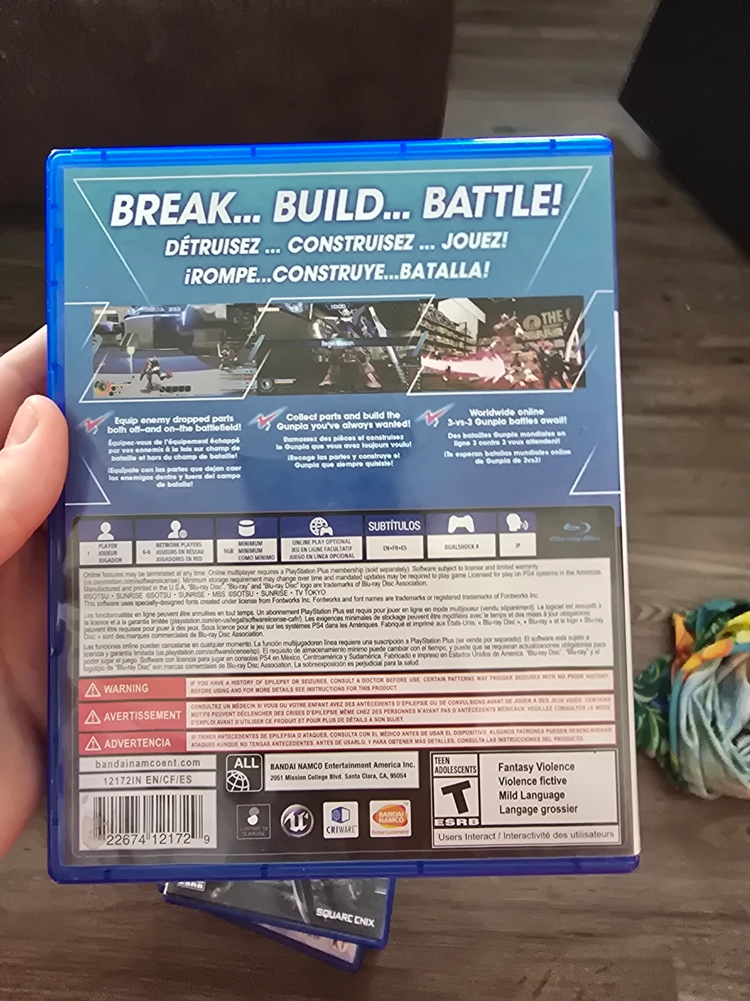Selling New Gundam Breaker for the PS4. It's rated T for Teen and features Fantasy Violence