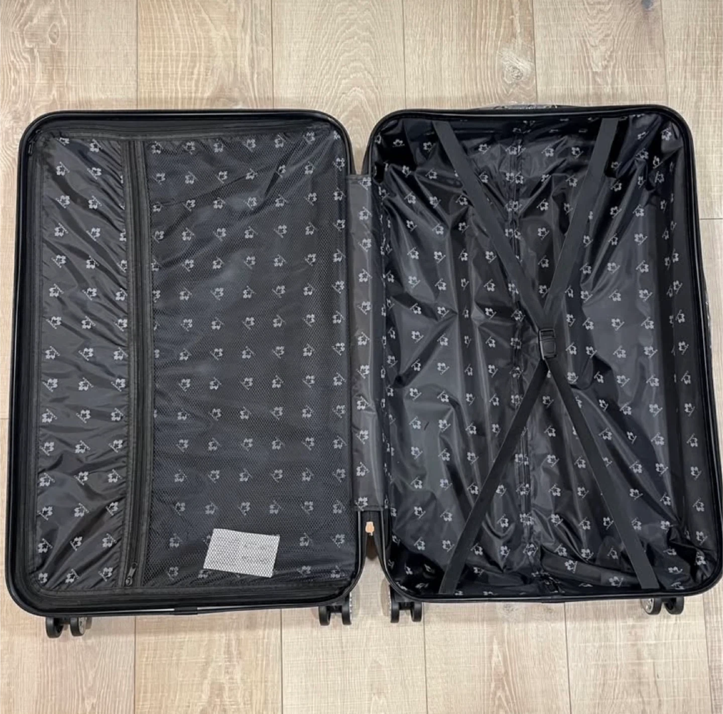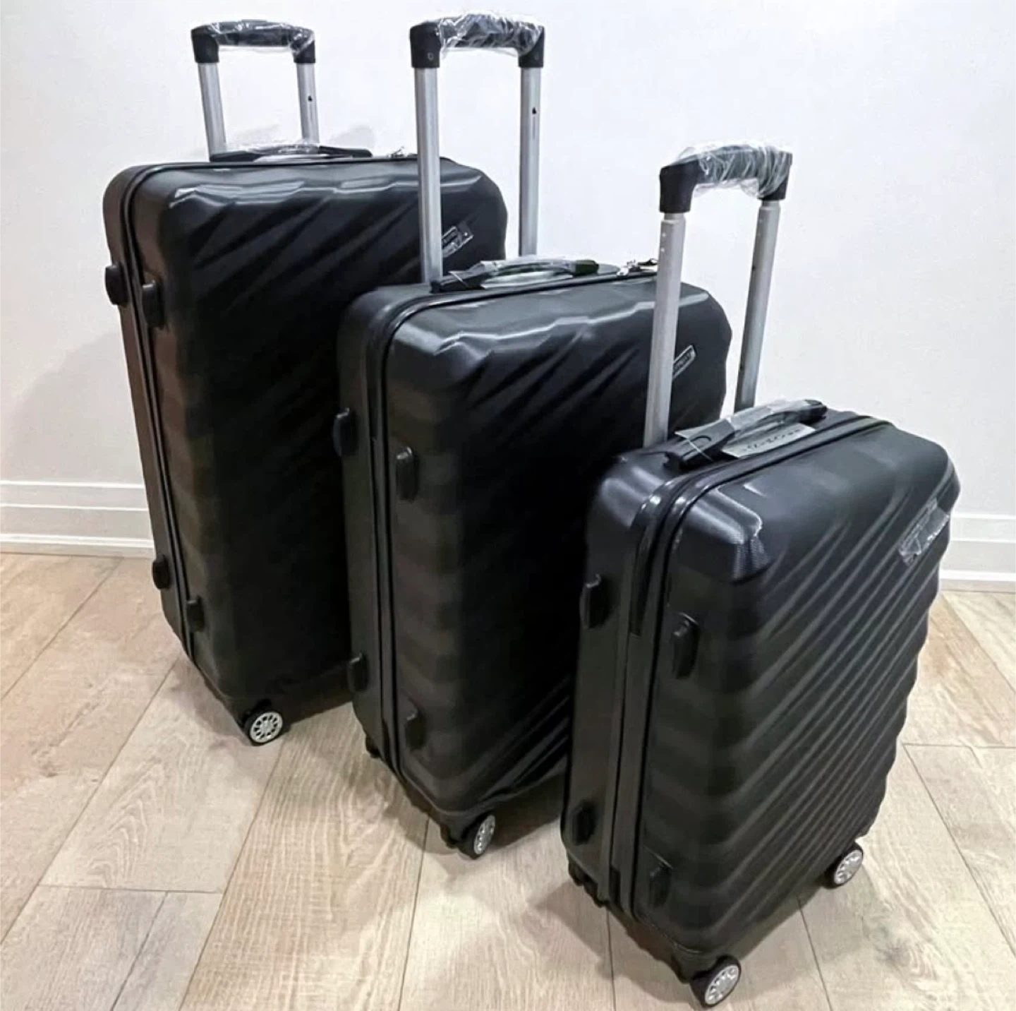 Selling a brand new luggage set in black! This set includes three different sizes, perfect for all your travel needs. It's in like-new condition and comes with the original box. Great for anyone planning a trip!