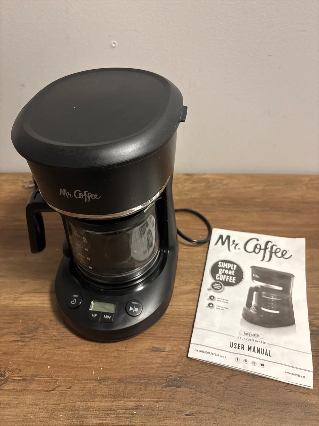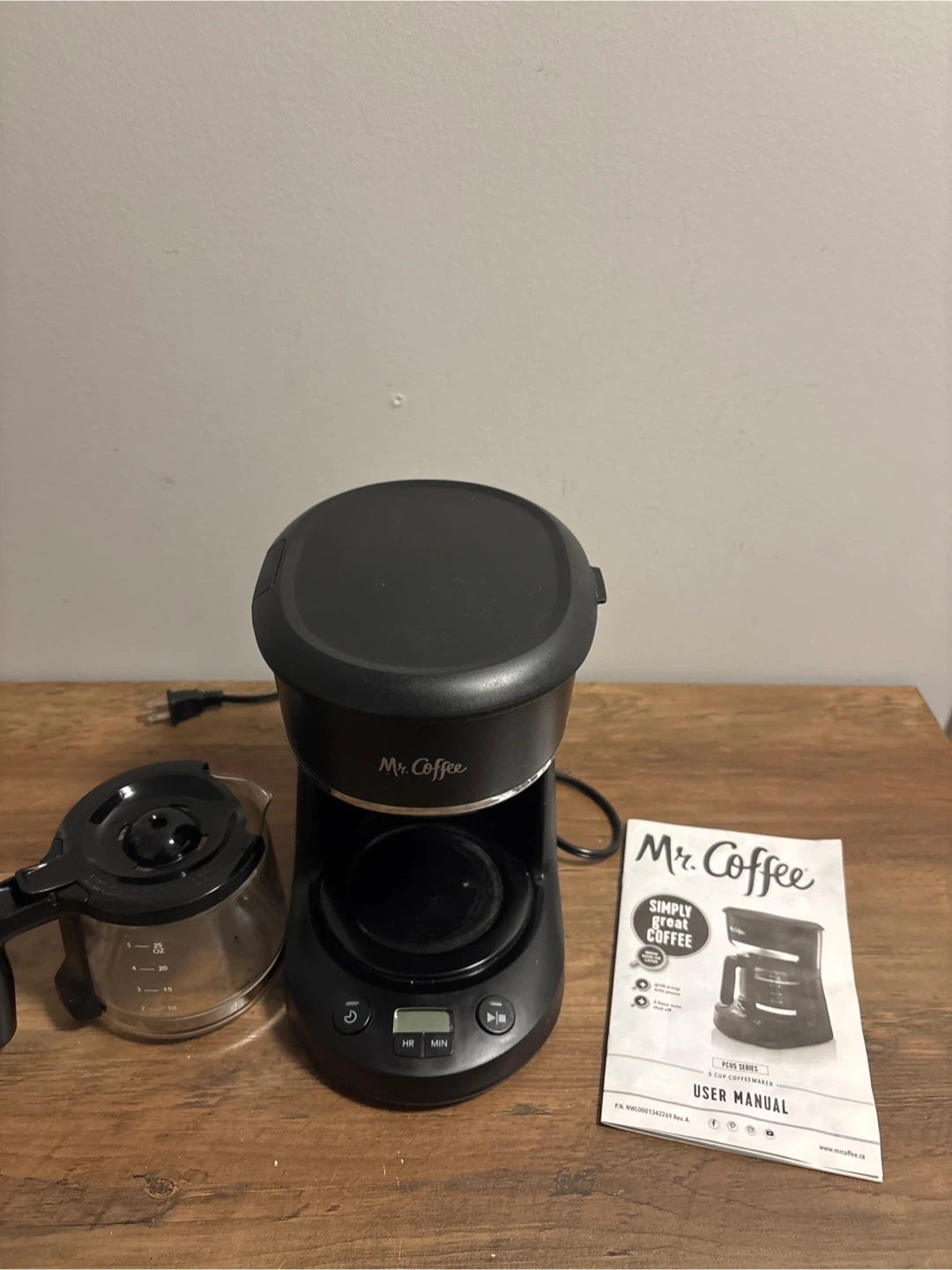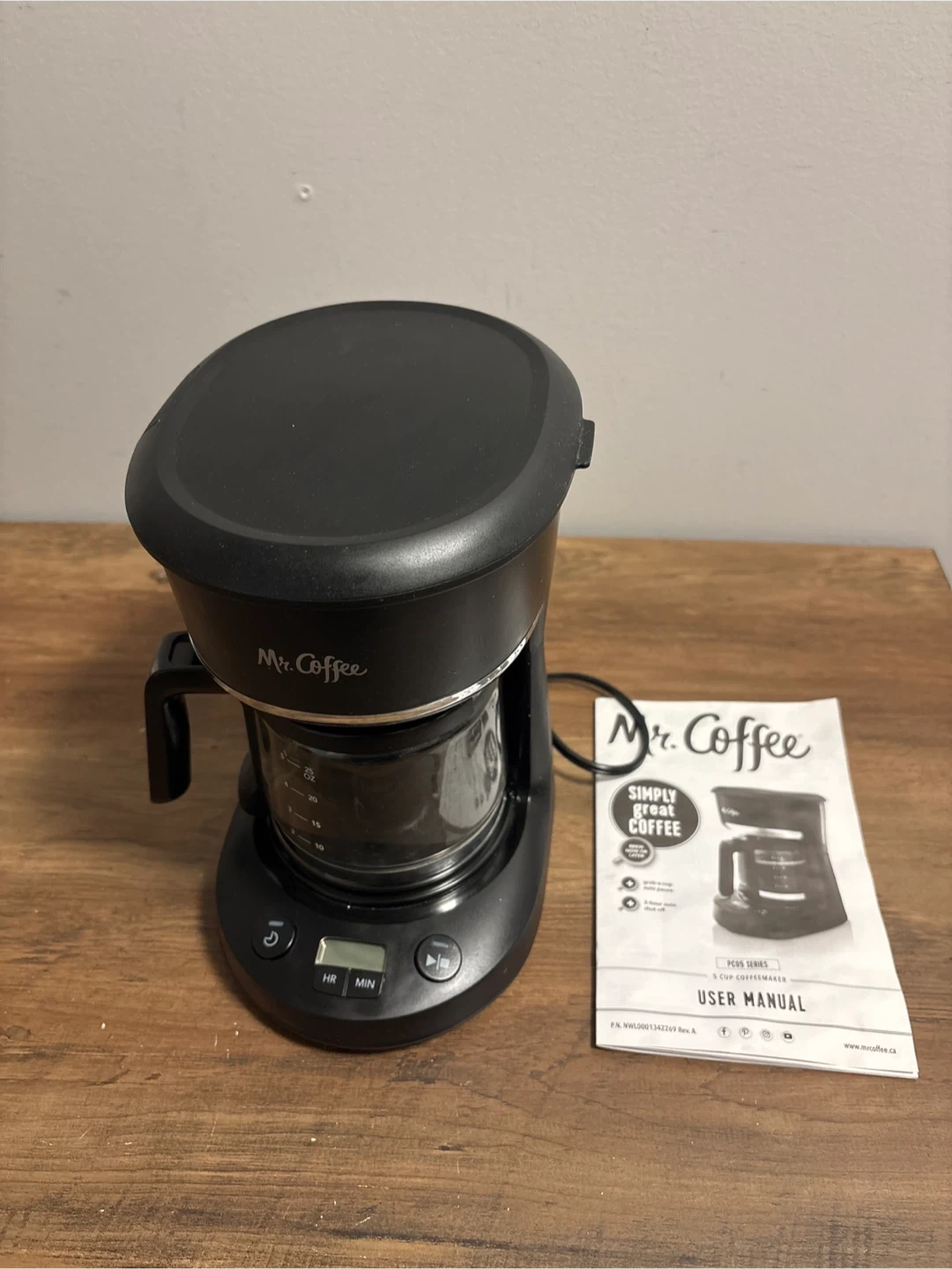 Selling a Mr. Coffee 5-cup coffeemaker. It's in great condition and comes with the user manual. Perfect for brewing a quick pot of coffee in the morning!