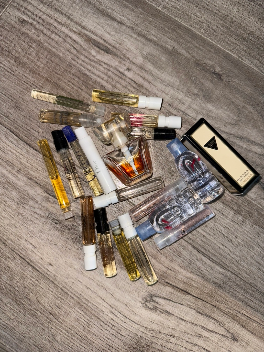 Selling a collection of designer perfume samples! Includes brands like Dior, Lancome (Poeme), Guess, and Daisy & more! Pick up by the Eaton Center at my condo, $5 for all! Only a few was used but the rest are all new