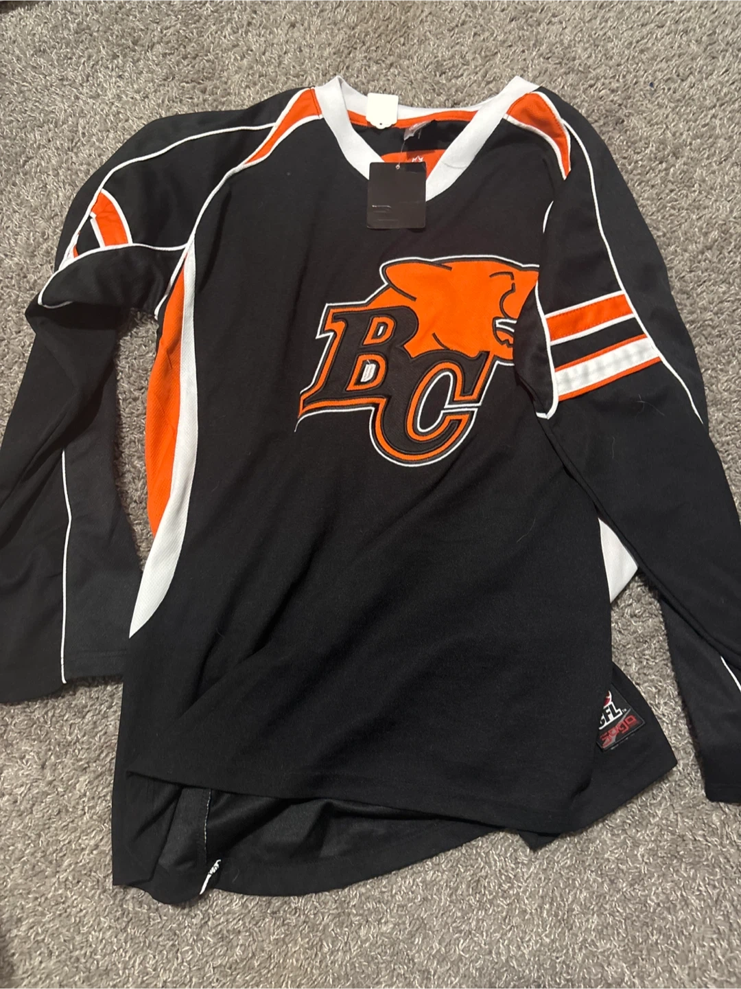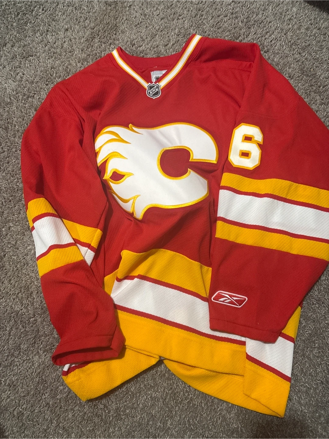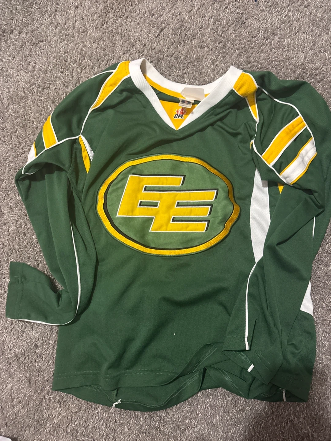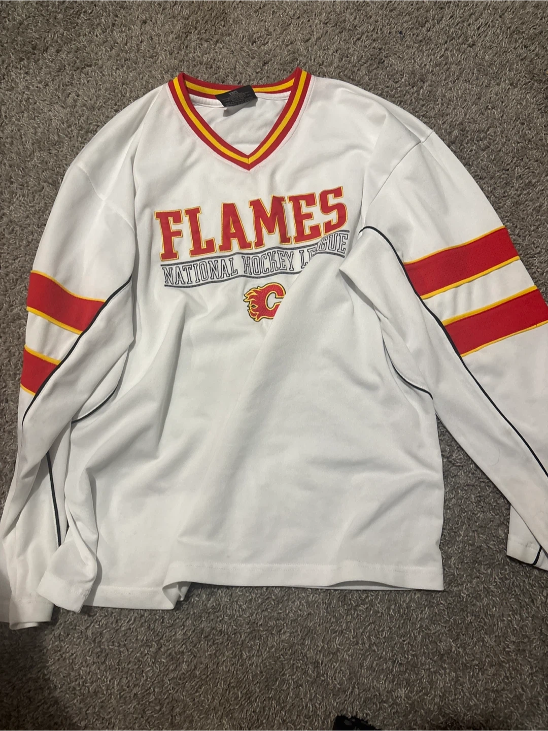 Selling a collection of assorted hockey and sports jerseys. Includes a Calgary Flames jersey, a Chicago Cubs jersey, an Indianapolis Colts jersey, an England jersey, and an Edmonton Elks jersey. All in good condition!