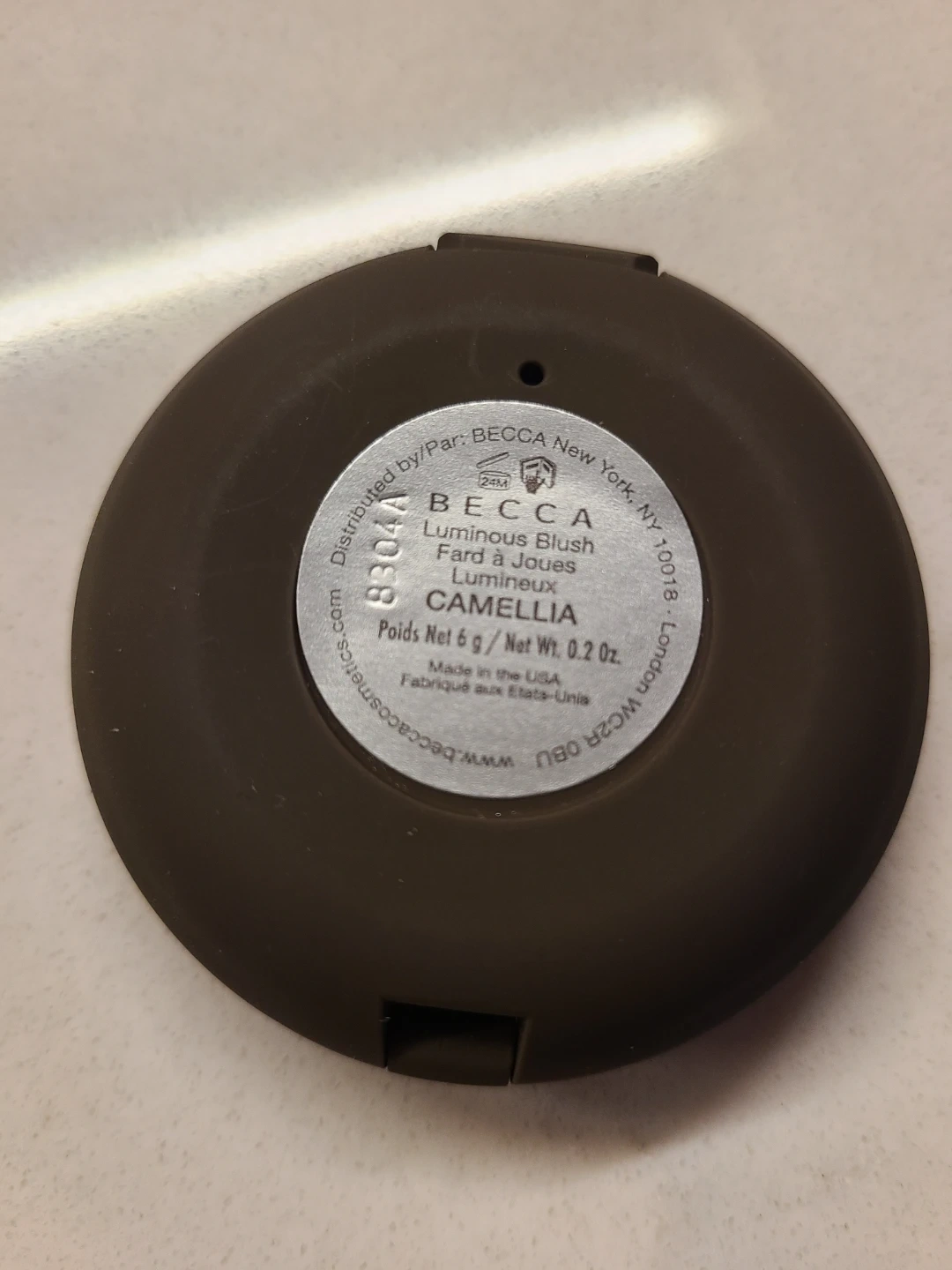 Becca Luminous Blush in the shade Camellia. It's a beautiful colour! Net weight is 6g / 0.2 oz