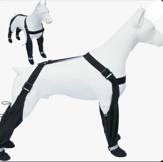 Keep your furry friend protected with these suspender dog boots! They're designed to stay on and provide full leg coverage.