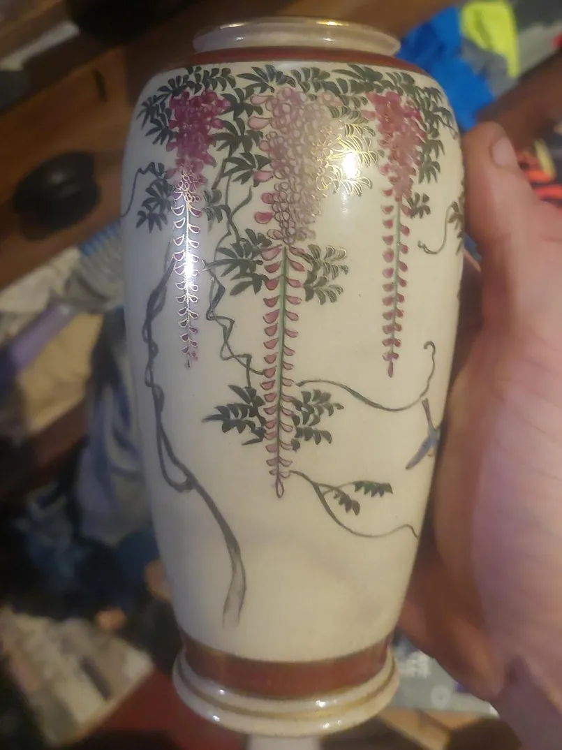 Selling a lovely vase with a floral design. It features wisteria flowers and birds, perfect for adding a touch of elegance to any room